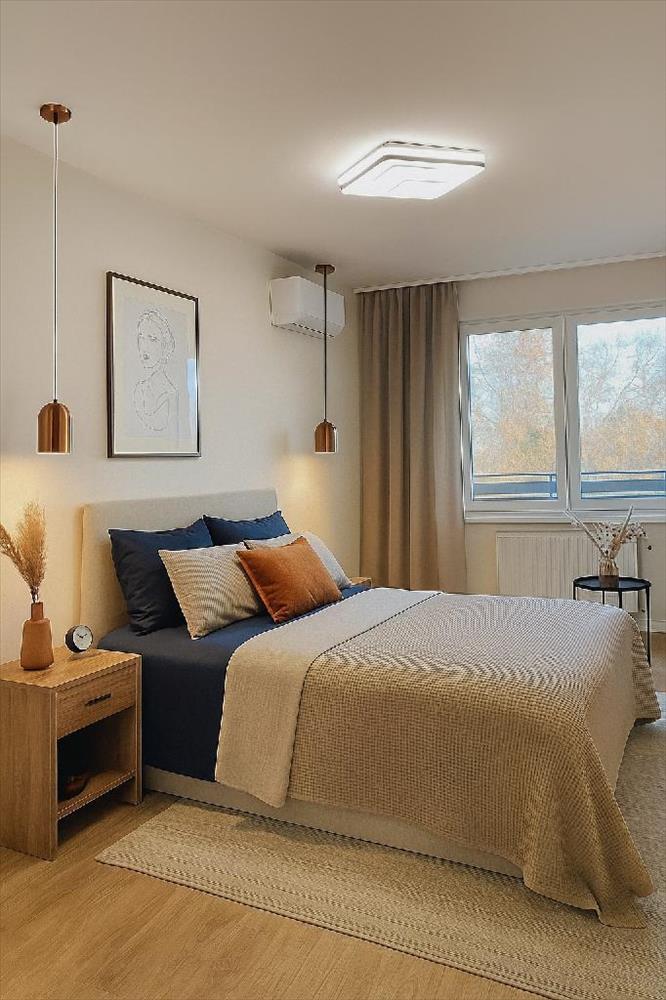 Légkondícionálóval felszerelt az amerikai konyhás nappali és a hálószoba is.