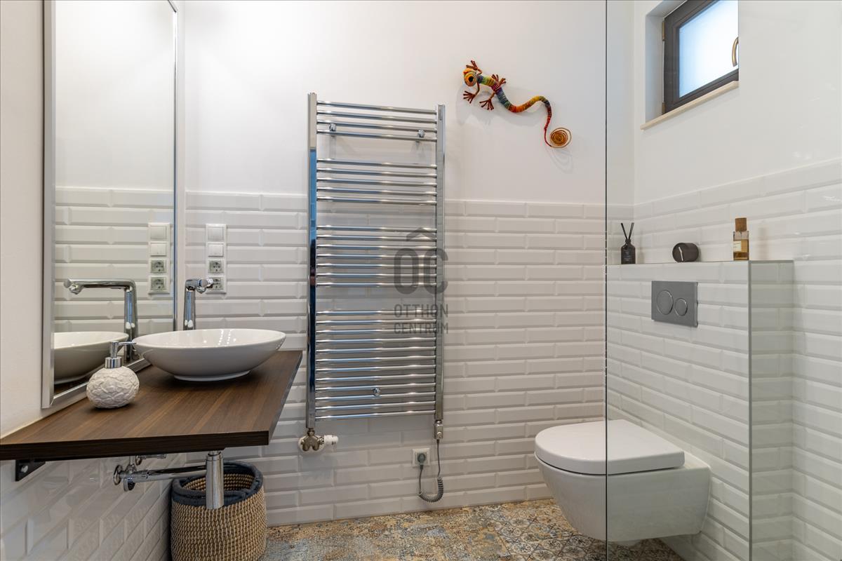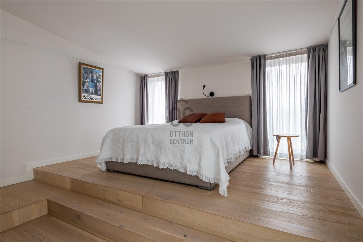 A mindennapi komfortot gázos padlófűtés, szintenként 2-2 klímaberendezés, elektromos redőnyök és tetőtéri ablakok biztosítják – minden ott van, ami szükséges, felesleges túlzás nélkül.