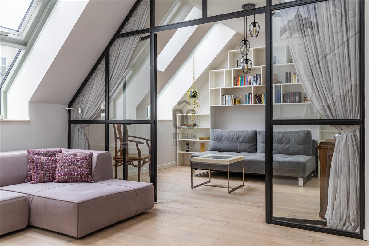 Budapesten, a XII. kerületben, a Városmajor mellett, az Ignotus utcában, egy felújított, liftes, klasszikus társasház felső szintjén található, 2018-ban ráépítéssel kialakított, 102 m²-es + 7 m² teraszos, kétszintes (duplex) lakás, praktikus pinceszinti tárolóval.