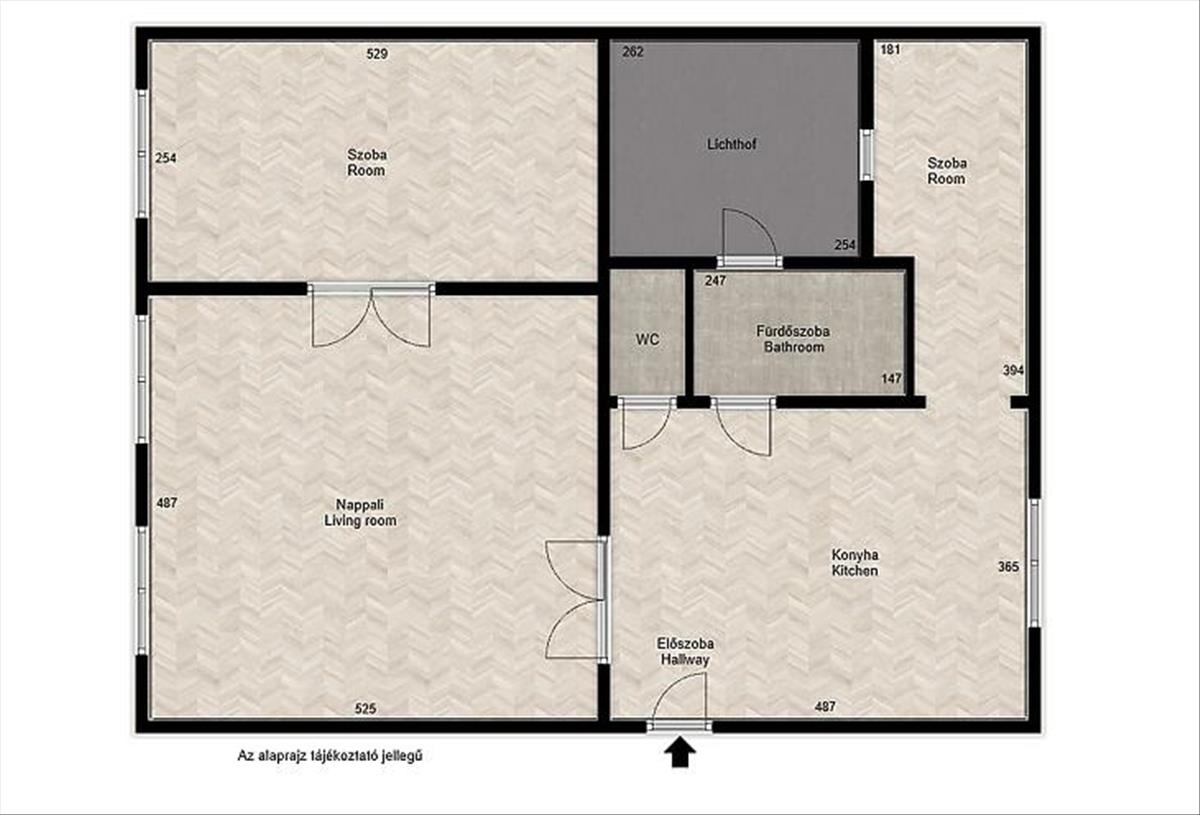 A lakásban egy tágas nappali és két hálószoba került kialakításra. a központi térben kapott helyet az ablakos, ideális méretű, modern étkezős konyha.
