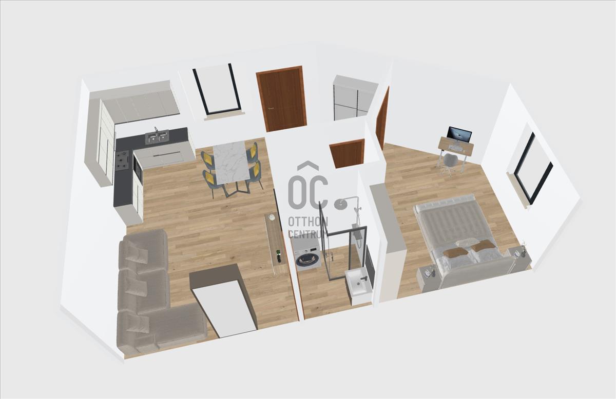 Elosztás: amerikai konyhás nappali, hálószoba, fürdőszoba és külön wc.