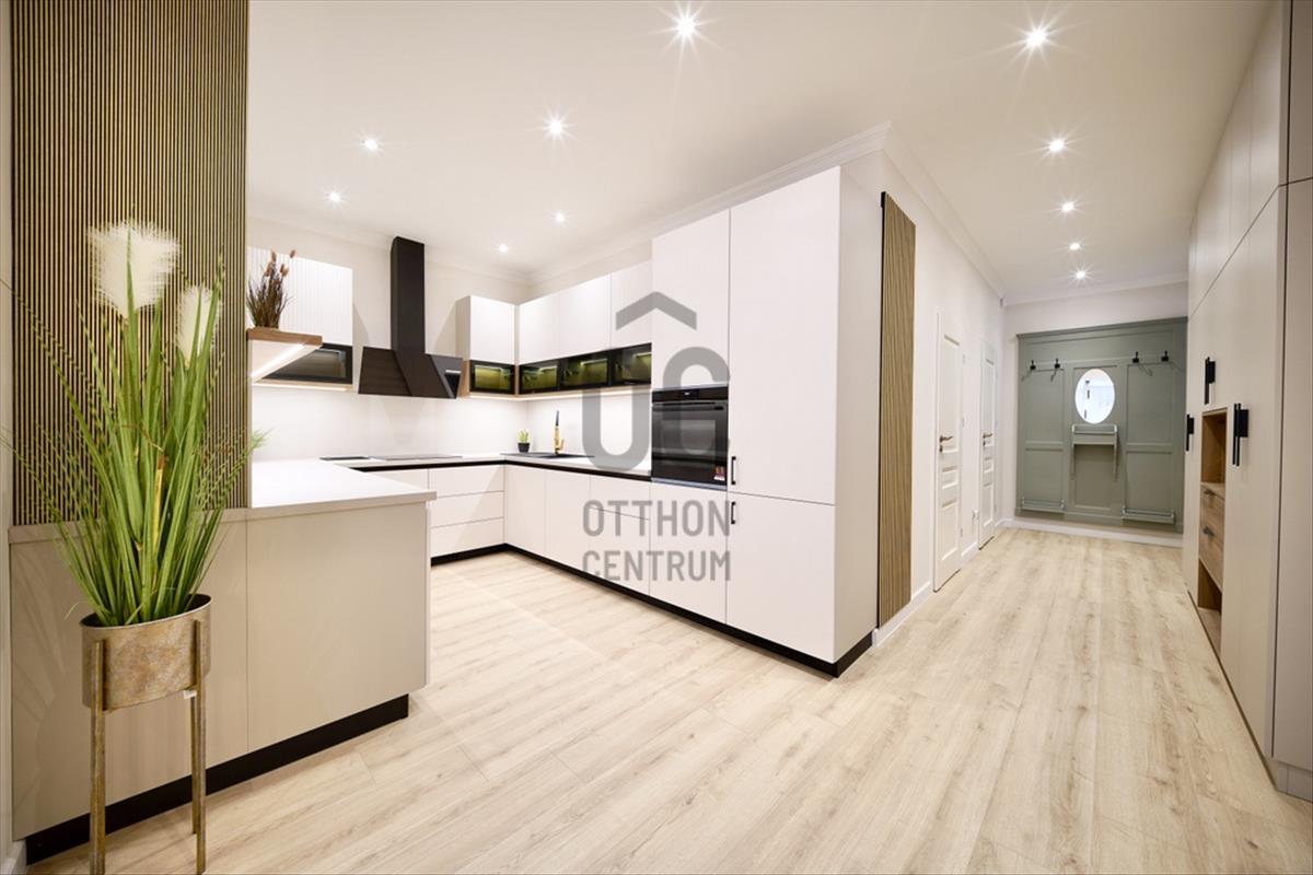 - a nappali, konyha és előtér közel 40 m²-es összefüggő teret alkotnak, amely rendkívül világos és tágas hatást biztosít.