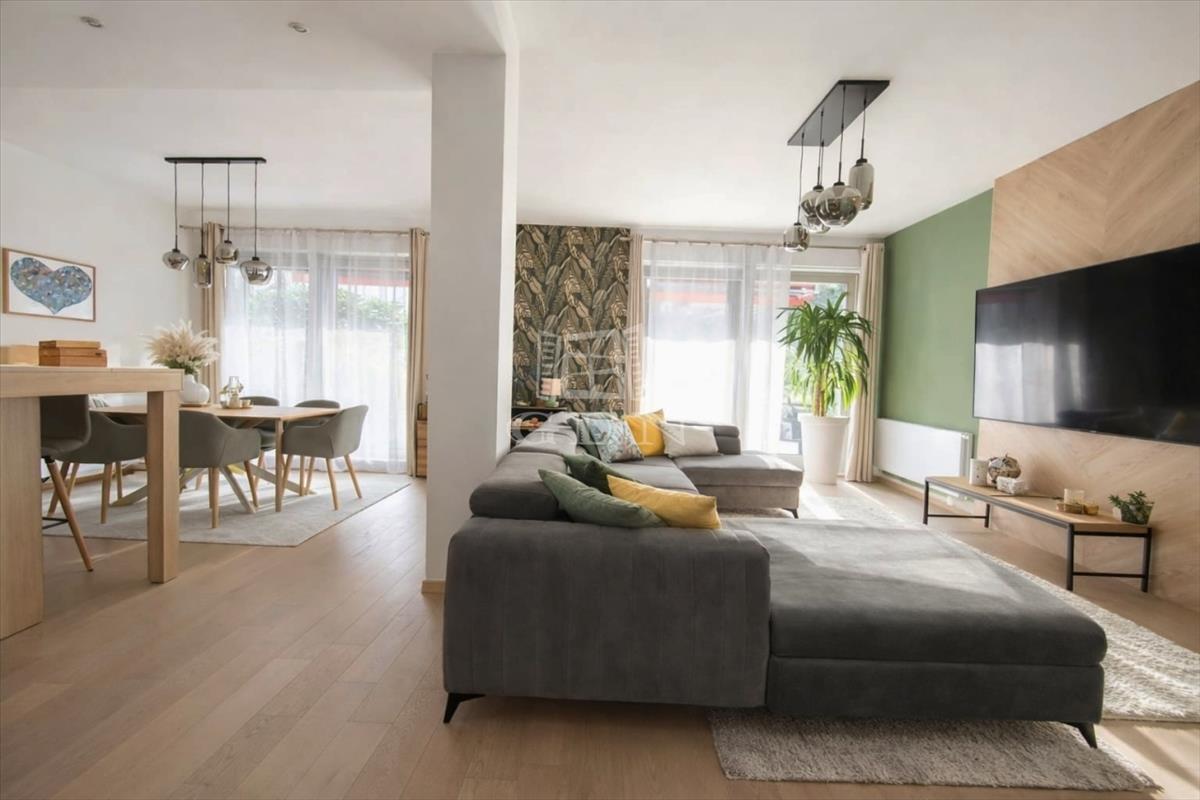A kert–terasz–belső tér harmonikus egysége egyértelműen családi házas hangulatot teremt, miközben megmarad a modern, igényes társasházi élet minden ELŐNYE.