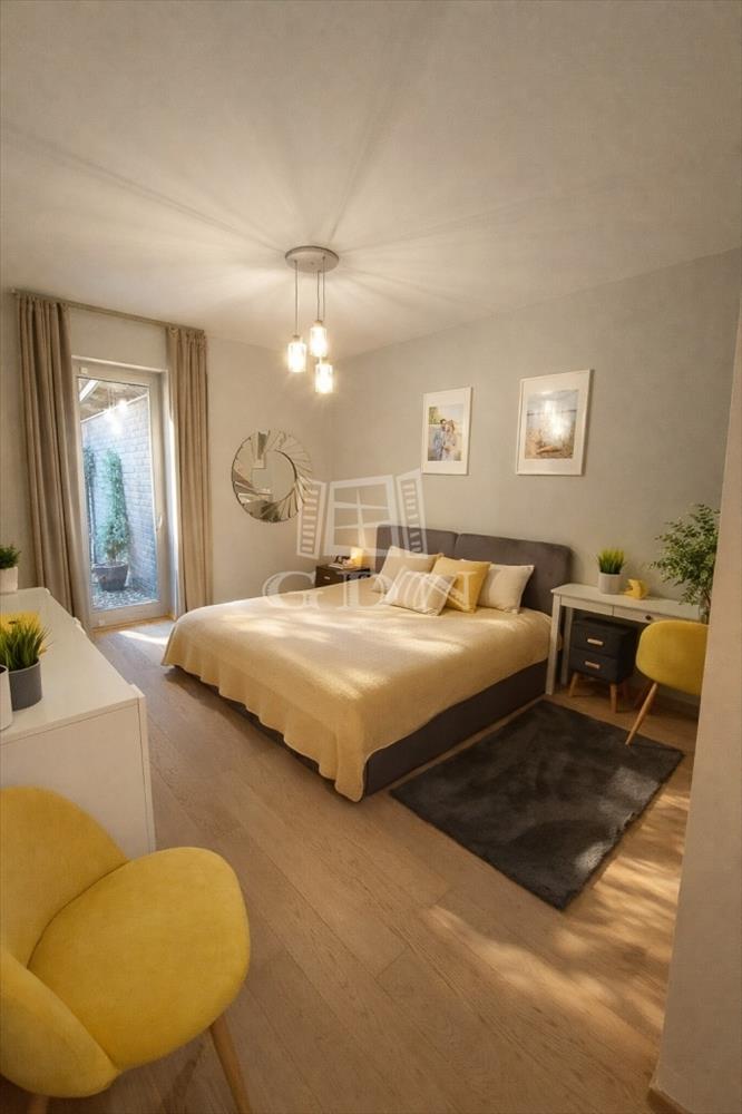 A lakás egyik legnagyobb értéke, hogy minden helyiség közvetlen kertkapcsolattal rendelkezik,