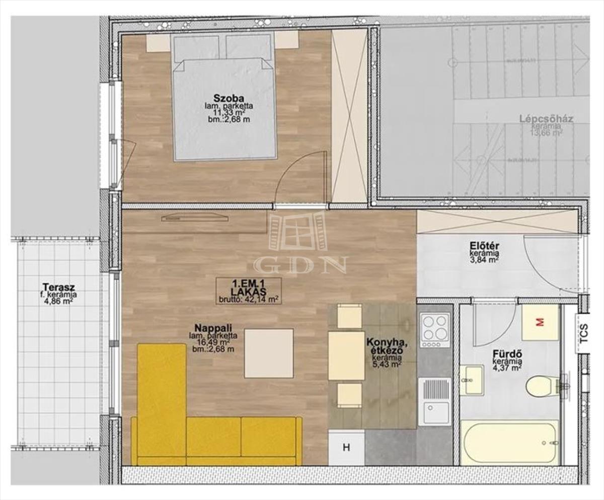 1. emelet – 42 m2 - 2 szoba – 5 m2 erkély – ELÉRHETŐ