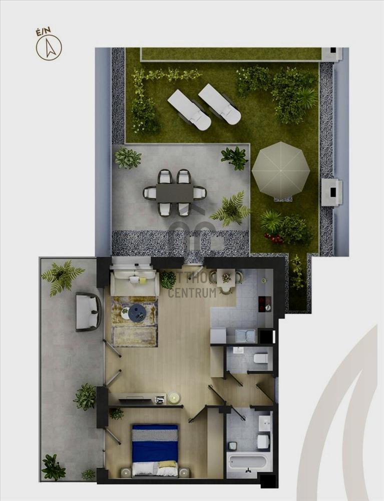 Lakás ÖSSZEFOGLALÓA főváros közkedvelt Duna-parti lakóparkjában, a Marina parton, a 2024-ben átadott Duna Terasz Grande 8. emeletén, 48 m² alapterületű + 18 m² NY-i fekvésű terasszal és 70 m² privát tetőkerttel/kertkapcsolattal rendelkező bútorozott lakás eladó. a lakás különlegességét a penthouse-hangulatot idéző, hatalmas privát kültéri élettér és a felső emeleti nyugalom teszi igazán exkluzívvá. a lakás jelenleg rövid távú kiadásként, a Booking rendszerében aktívan működik.