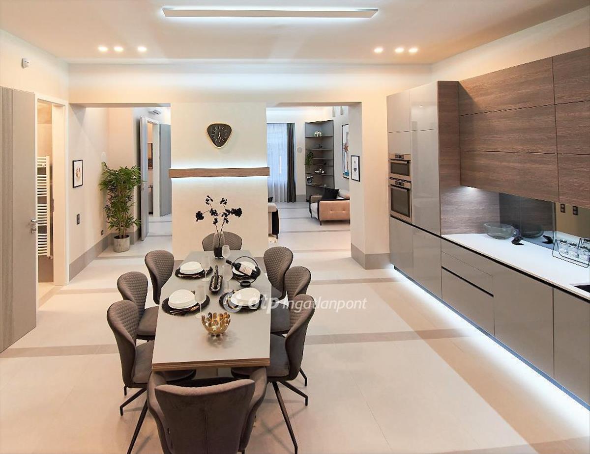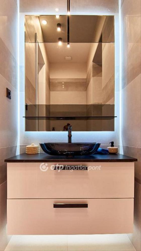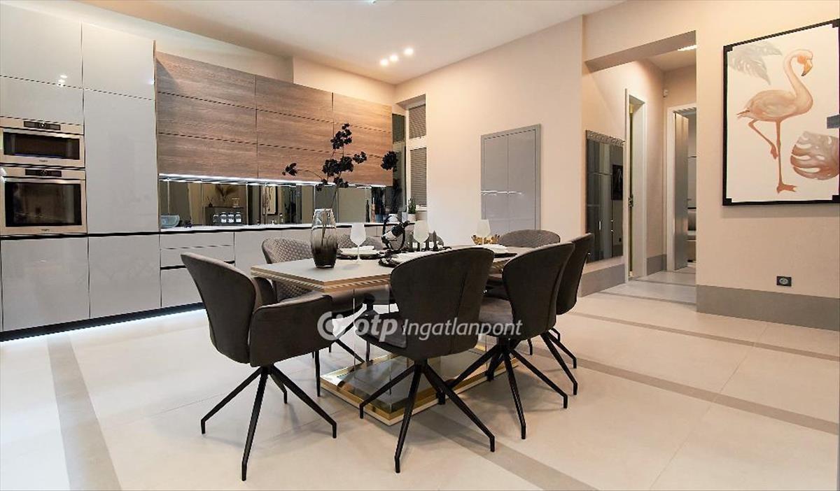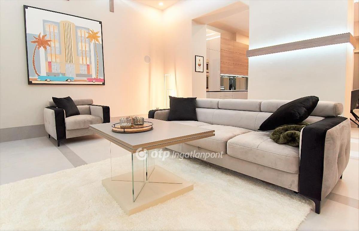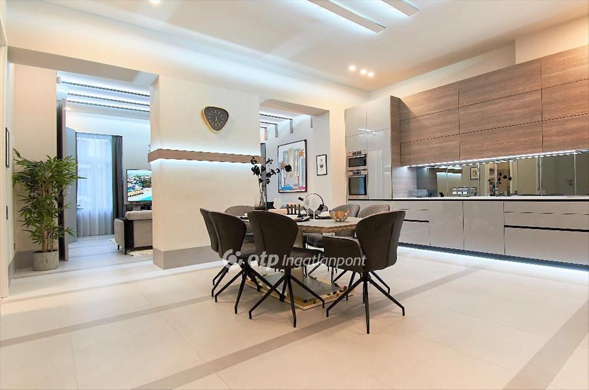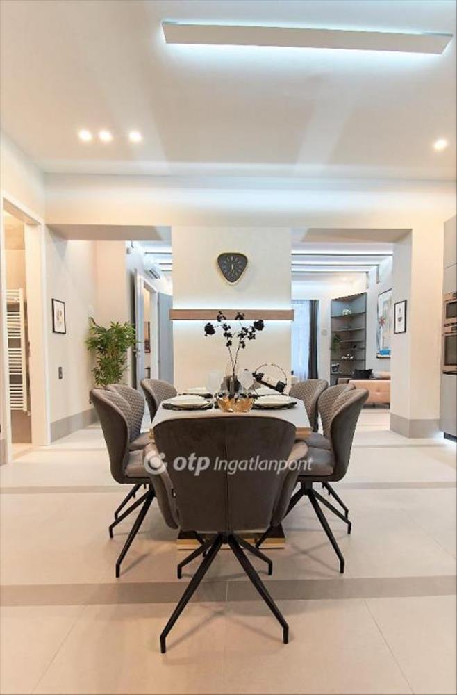 AZ ingatlan teljes, egyedileg készített, minőségi bútorzattal, teljes berendezéssel ( a képeken látható állapotban), beépített gépekkel felszerelve eladó.