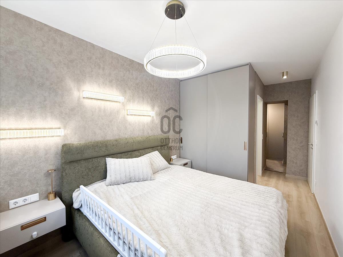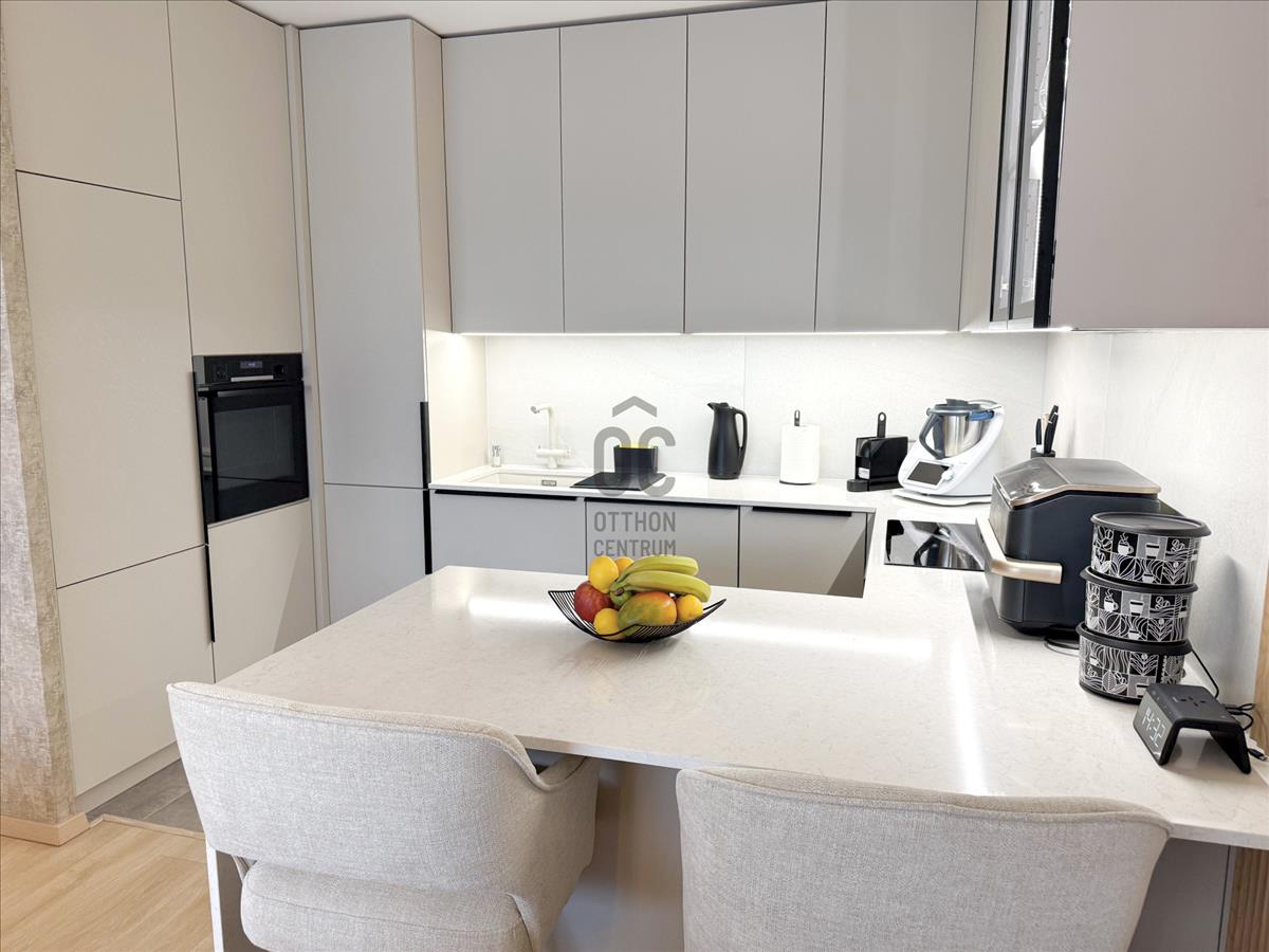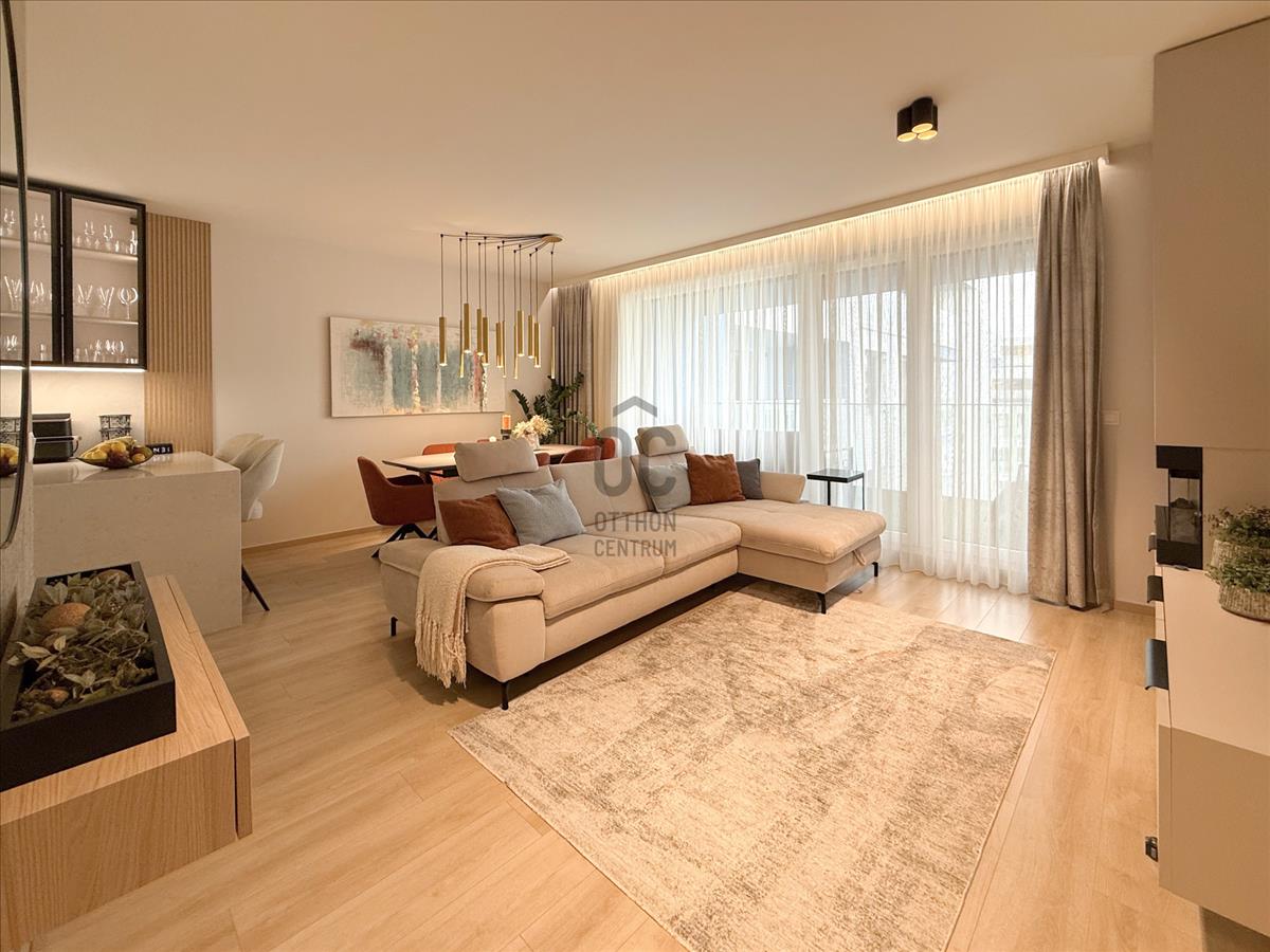 Budapest közkedvelt Duna-parti lakóparkjában, a Marina parton, 2024-ben átadott társasház 7. emeletén, 78 m² alapterületű + 12 m² terasszal rendelkező, duplakomfortos (kádas és zuhanyzós fürdőszoba is) prémium minőségű, letisztult, modern és fiatalos otthon eladó. Ide tényleg csak bőröndöt kell hozni, a teljes bútorzat a lakás - és a vételár részét képezik.