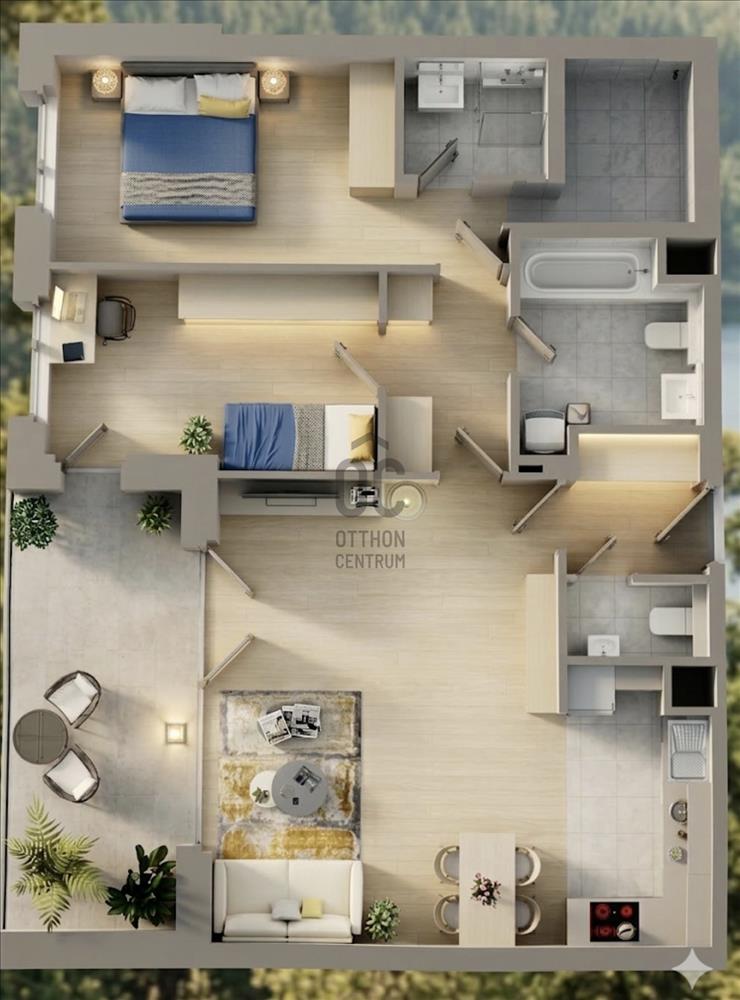 - 2 fürdőszoba - duplakomfort, továbbá külön WC+kézmosó helyiség