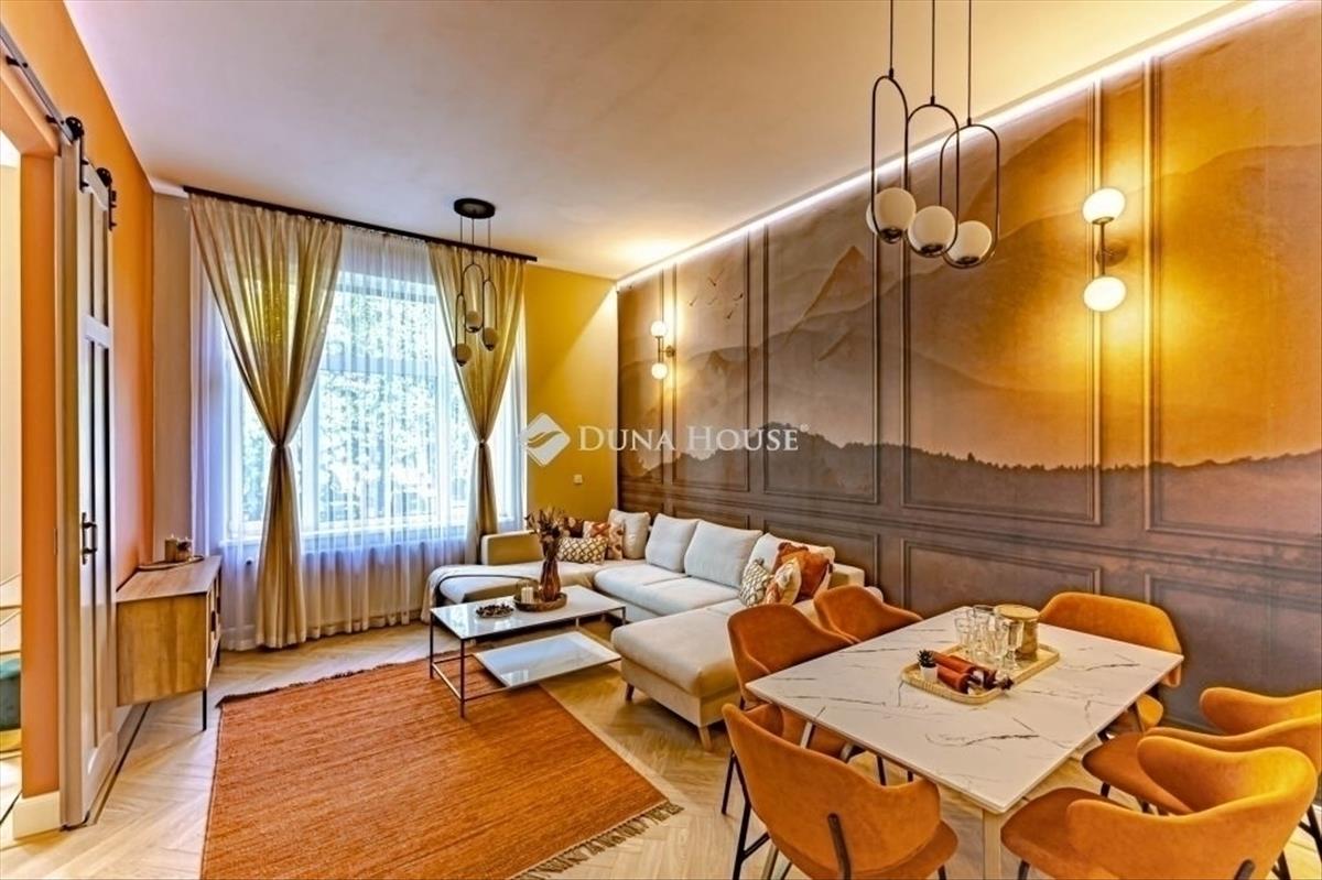 XIII. kerület Újlipótvárosi részén, a pezsgő Belváros szomszédságában pár perc sétára Westendtől, eladó egy nagypolgári lakás. a lakás tulajdoni lap szerint 92 nm melyet két lakássá bontottak, ennek eredmény keppen, egy közel 75 nm, és egy 18 nm alapterületű lakás került kialakításra. Jelen hirdetésben szereplő 75 nm lakrészt kínáljuk eladásra. a lakást, a mostani tulajdonos az alapokig visszabontotta, és minden elemében megújította. Ennek köszönhetően, két hálószoba és tágas nappali került kialakításra. a terekre jellemző, hogy a mind a fő mind a második hálószoba is közel 15 nm; a fő hálószobából leválasztottak egy Gardrobe helyiséget. a nappali tágas világos, magában foglalja az étkezőt is, a konyha a tágas közlekedő részen kapott helyet, ahonnan a Fürdő és az udvari tájolású hálószoba is megközelíthető. a felújítás során magas minőségű anyagok kerültek beépítésre, mind a szaniterek, mind a nyílászárók tükrözik azt az igényességet, amelyet a Home Staging során kiválasztott bútorok és berendezési tárgyak egészítenek ki és teszik harmonikus otthonná. a lakás teljes bútorzattal, és berendezési tárgyakkal együtt megvásárolható. a házban a rövidtávú kiadást mostani tudásunk szerint a ház nem engedélyezi, a kisebbik lakrész jelen pillanatban is ki van adva hosszú távra. Igény esetén az is megvásárolható, külön megállapodás alapján. Jöjjön el nézze meg.