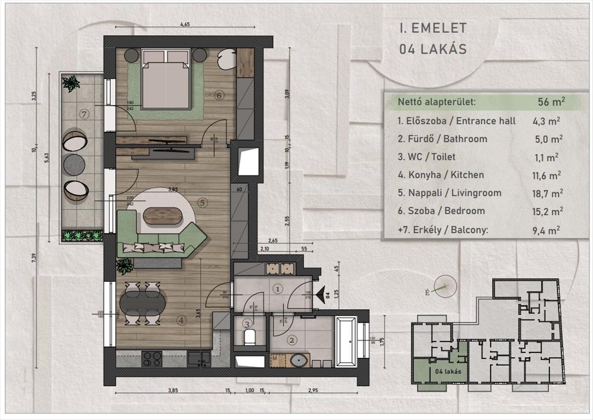 - Alapterület:56 m2