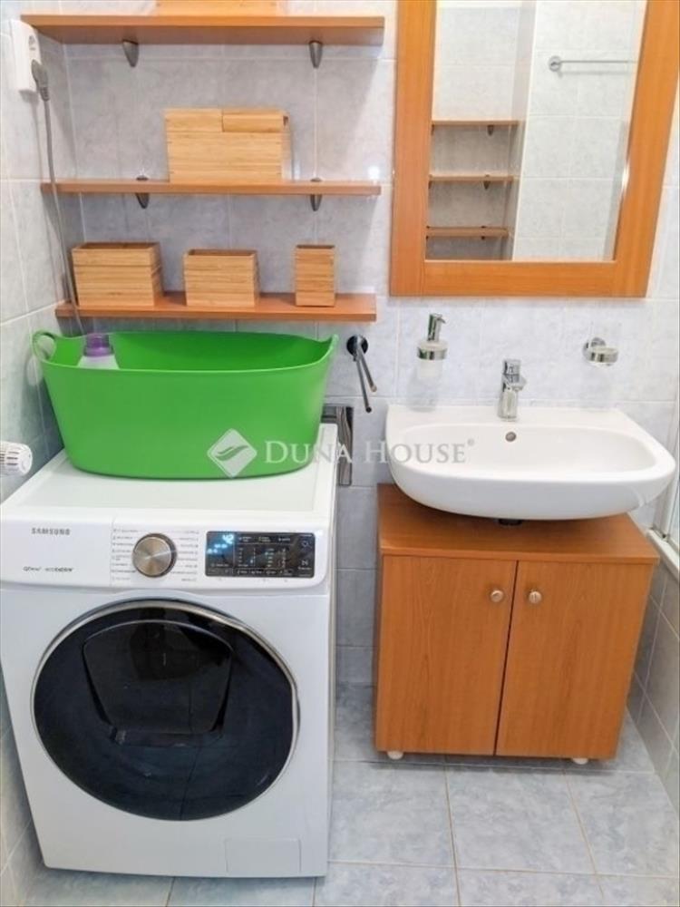 XIII. kerületben, a Béke tér közelében, a Csata utcában, 2008-ban épült, korának megfelelően remek állapotú társasház 1. emeletén (lift is van) eladó, egy 48 nm -es, tágas, jól berendezhető, kivételesen praktikus elrendezésű, zöld fákkal övezett mellékutcára tekintő lakás. Az ingatlan az újszerű lakások között is kiemelkedően jó belső elrendezéssel rendelkezik. Minden helyisége előszobájából külön bejáratú, jól berendezhető, tágas. a 24 nm -es amerikai konyhás nappaliszoba ideális nagyobb vendégség fogadására is, míg a hálószoba is 13 nm -es méretével az átlagot lényegesen meghaladó méretű. a lakás ezen kívül fürdőszoba és külön wc helyiségekkel felszerelt még. a lakás állapota korának megfelelően kiváló, átadása óta ugyanazon tulajdonos birtokában áll, aki végig kifejezetten vigyázott rá, és karban tartotta. Jelenlegi állapotában az ingatlan akár azonnal beköltözhető, bármilyen munkálat elvégzése nélkül. Felszereltségét kiváló minőségű konyhagépek, klímaberendezés, továbbá praktikus, a lakás színvilágához illeszkedő szabadon álló és beépített bútorok is emelik, melyeket az új tulajdonos a lakással együtt birtokba vehet. Fűtését és melegvíz ellátását a társasház központi kazánja szolgáltatja, a közművek mindegyike (és a fűtés is) saját mérőórával rendelkezik. Az épület hőszigetelésének és a korszerű, műanyag ablakoknak köszönhetően fűtési költsége kifejezetten kedvező. a lakás remek fényviszonyú, nyugatias kitettségének köszönhetően egész délután napfényes, ablakai rendezett, fákkal övezett mellékutcára néznek. a társasház remek állapotnak örvend, a lakóközösséget rendezett körülmények között élő, csendes életvitelt folytató szomszédok alkotják. Az épület lépcsőháza akadálymentesített, belső terei szép állapotúak, rendezettek. a környezet ellátottsága ideális. Az ingatlan irányára: 71, 99m Ft, melyhez a lakásban található ingóságok 1, 5m Ft, és gépek 1, 5m Ft értékben szintén megvásárolandóak!