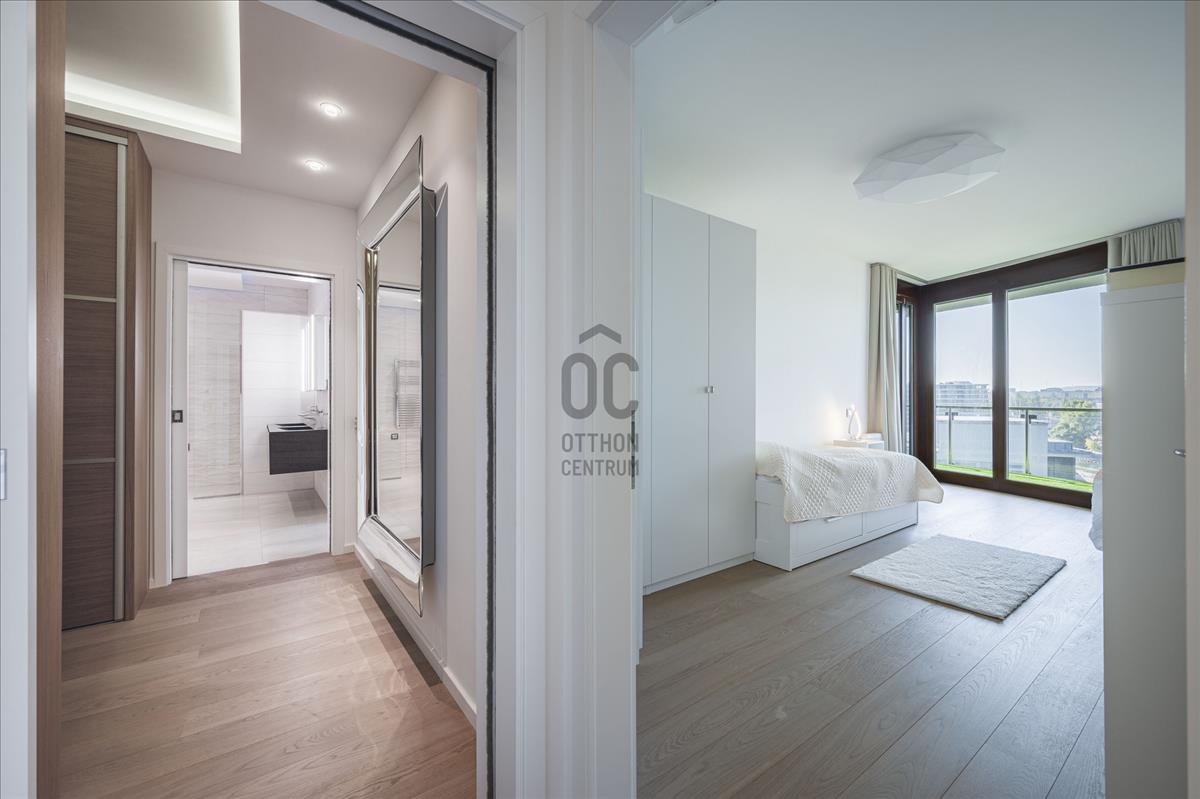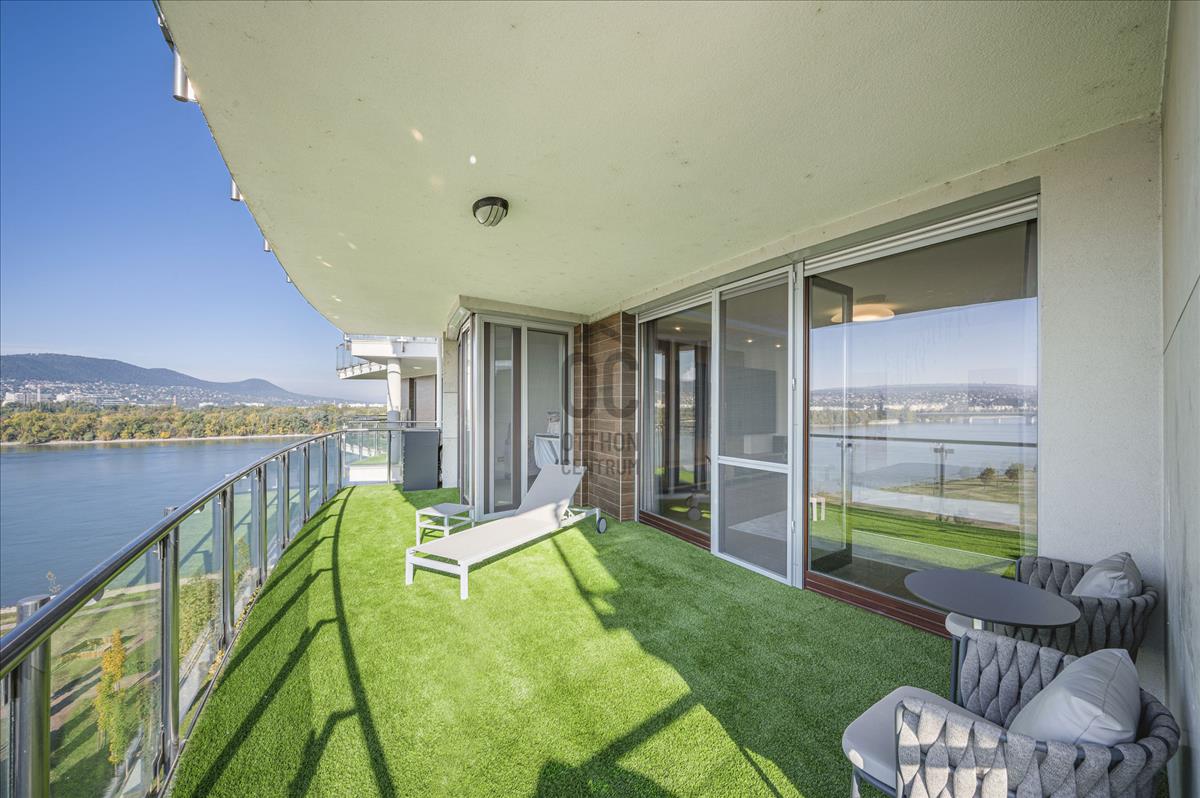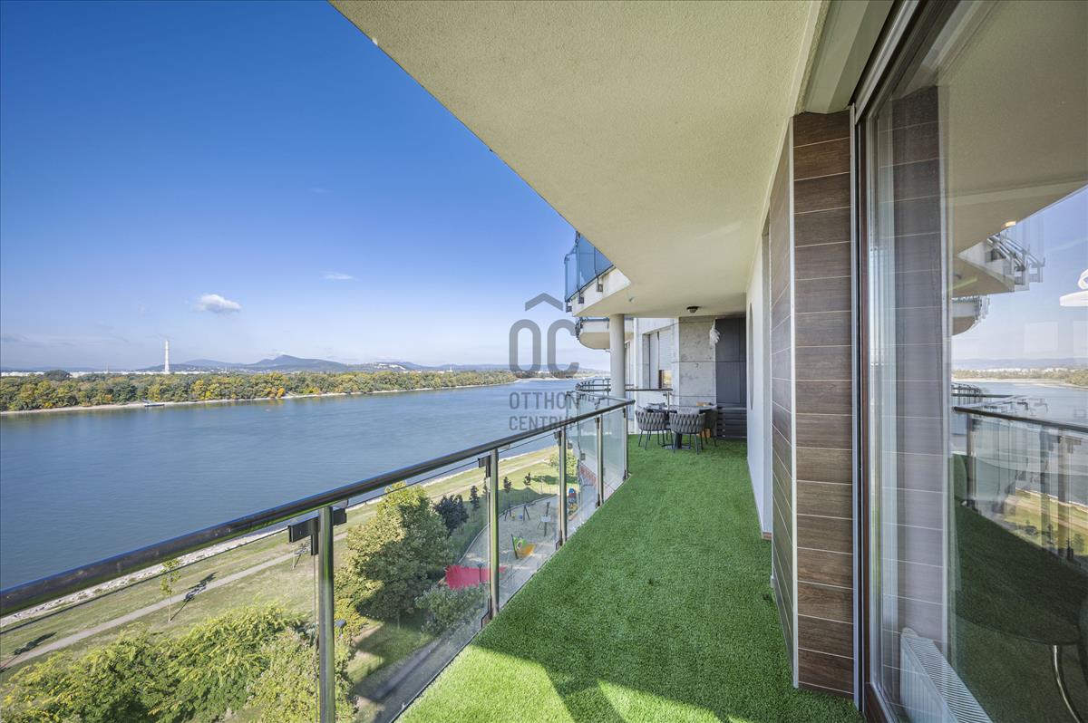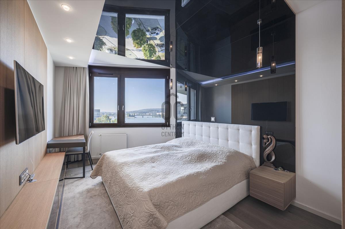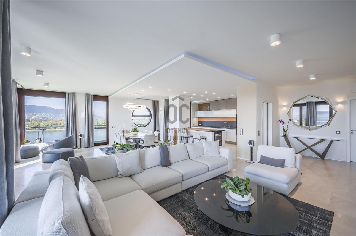 XIII. Marina parton eladó egy teljeskörűen felújított, négyszobás (nappali + 3 hálószoba), hatodik emeleti, 209nm alapterületű + 77nm erkéllyel rendelkező, dunai panorámás, délnyugati tájolású luxus mőségű lakás. Az ingatlan közvetlenül a Duna-parti sétány legelején helyezkedik el, így nemcsak a Duna, hanem Budapest belvárosának jellegzetes látképét is élvezhetik tulajdonosai.Az apartman átépítése belsőépítész által, egyedi megoldásokkal, prémium minőségű bútorok és eszközök beépítésével történt.
