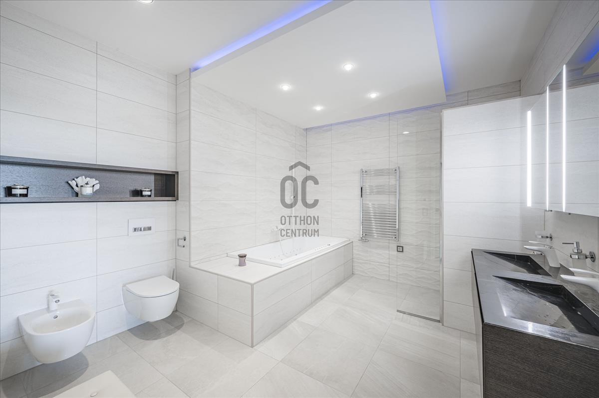 A kikapcsolódást szolgálja a külön helyiségben elhelyezett infraszauna, a nagyobb fürdőszobában a hidromasszázs kád.