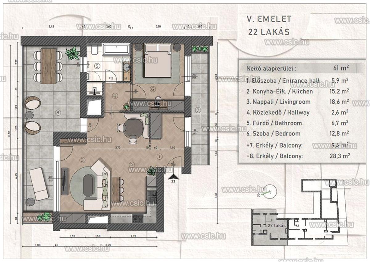 - Alapterület:61 m2