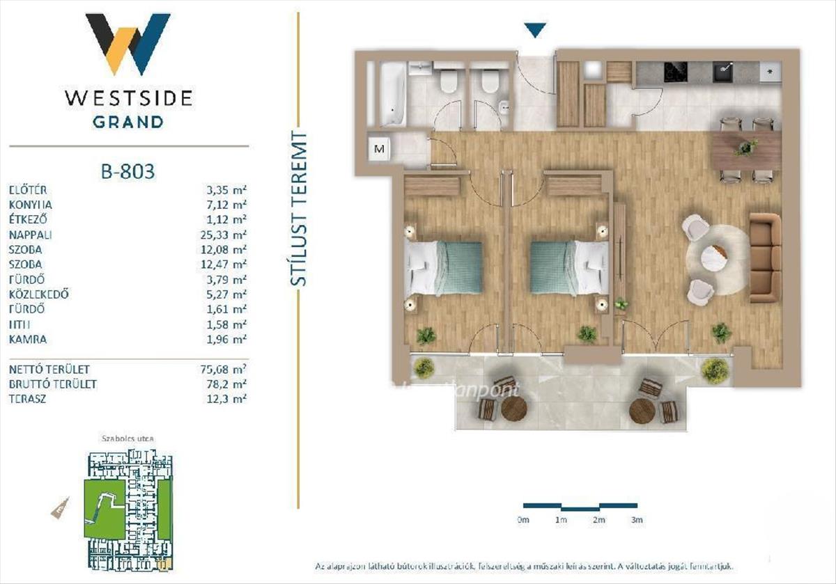 Az eladásra kínált lakóingatlan a? Westside Grand? Komplexum kivitelezése részeként kerül kialakításra.