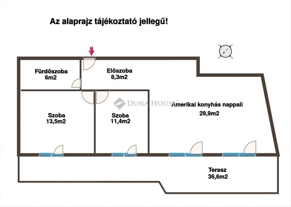 - Tájolás:ÉNY