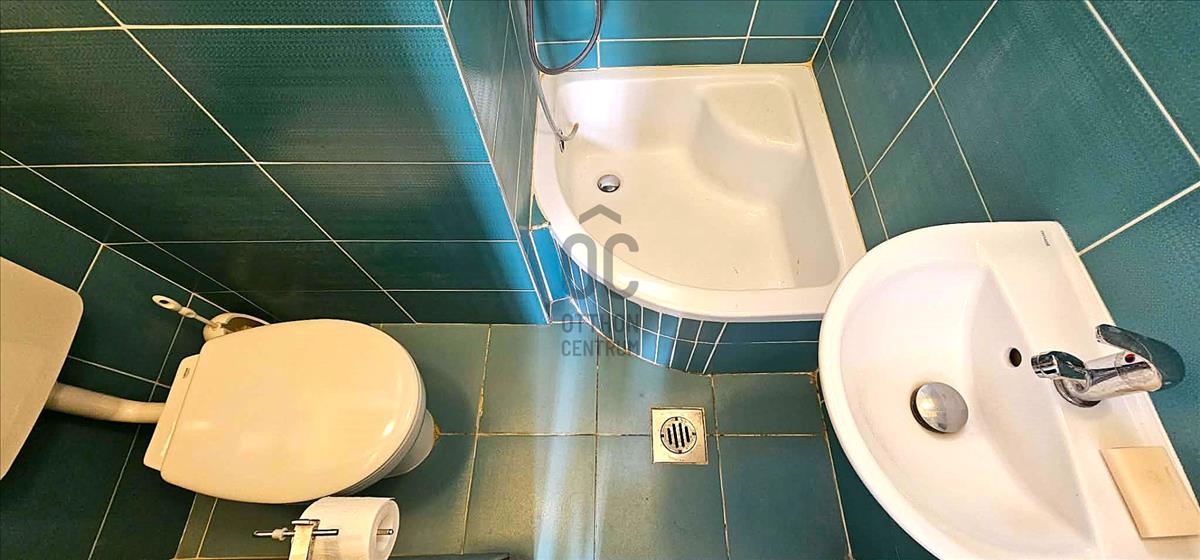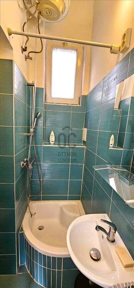 Kis modern felújított fűrdőszobálya ablakkal is rendelkezik, itt található a mellékhelyiség is.