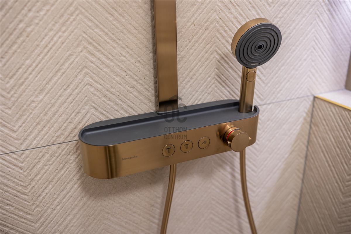 - Fürdőszoba Hansgrohe csaptelepekkel, spanyol kerámiával burkolva