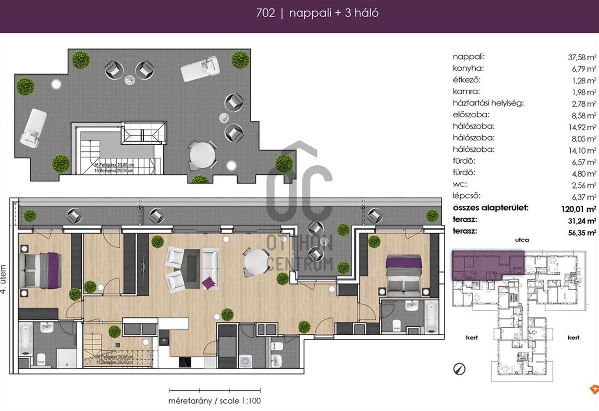Lakóterület: 120 m2 | Terasz: 31 m2 | Tetőterasz: 60 m2