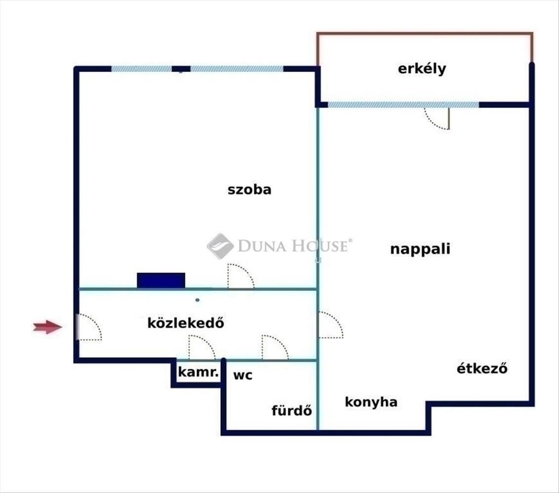 - külön nyíló helyiségek: előszoba, konyha, kamra, fürdő + wc, kisebb és nagyobb szoba,
