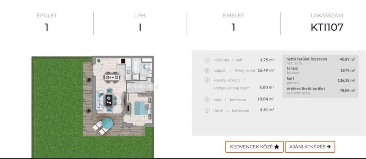 40, 9 Nm-es lakás + 19, 79 nm terasz + 116, 5 nm magán KERT!