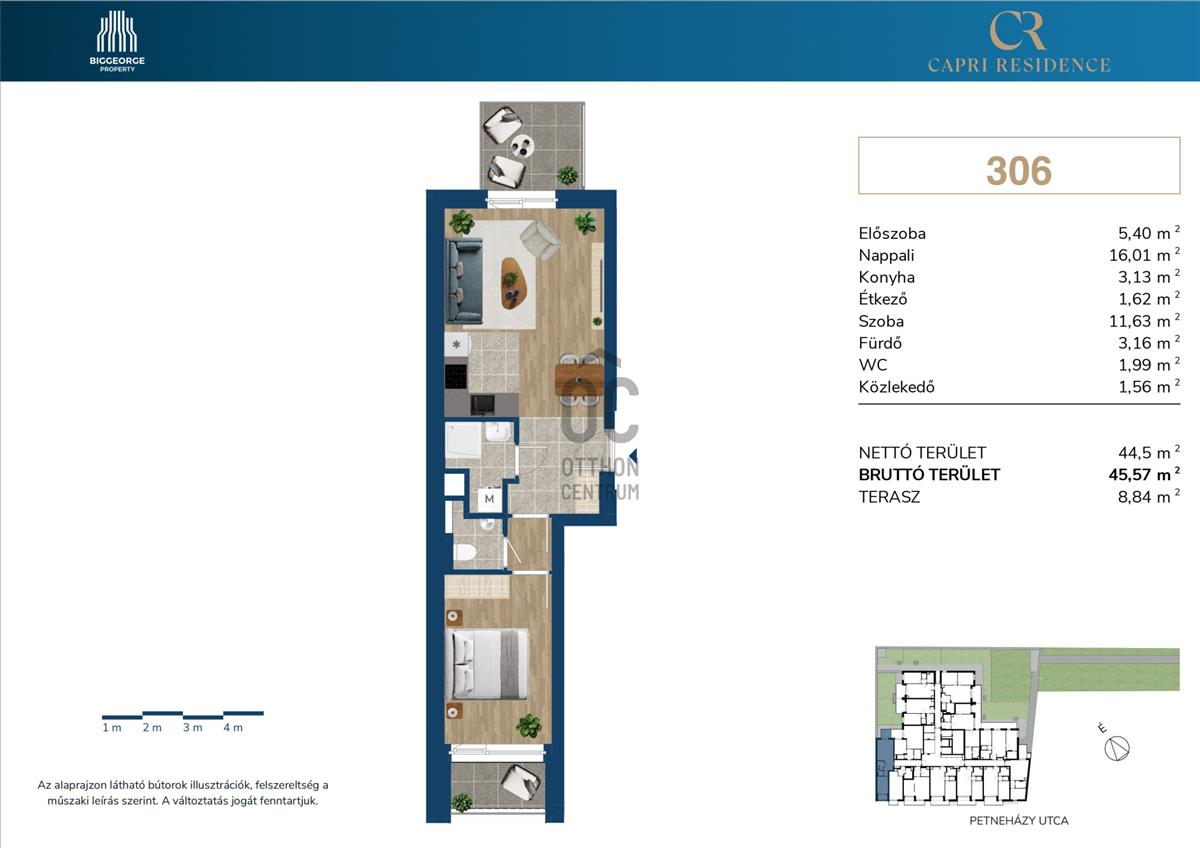 A Capri Residence a XIII. kerület szívében, a dinamikusan fejlődő Váci út közvetlen közelében valósul meg, amely Budapest egyik legkeresettebb lakáspiaci területe. Az elegáns, modern megjelenésű épületet, a homlokzatán végigfutó üvegkorlátos teraszok díszítik majd, a felsőbb szinteken pedig nagyteraszos lakások is elérhetők, amelyek egy része panorámás kilátást biztosít.