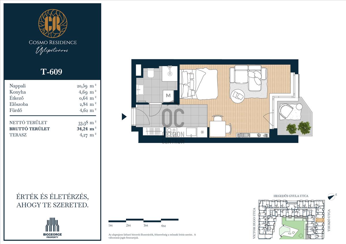 A Cosmo Residence nemcsak egy újabb lakópark – hanem egy életstílus, amely a belvárosi pezsgést és a nyugodt, zöld környezetet egyaránt biztosítja lakóinak. Az ingatlan 2027. Első felére készül el, és összesen 230 változatos méretű és elrendezésű lakást kínál, a 32 m2-es stúdiólakásoktól kezdve egészen a tágas, 125 m2-es, nappali + három hálószobás lakásokig. a legtöbb lakás erkéllyel rendelkezik, a legfelső szinten pedig exkluzív penthouse lakások várják azokat, akik a privát tetőterasz nyújtotta különleges panorámát szeretnék élvezni.