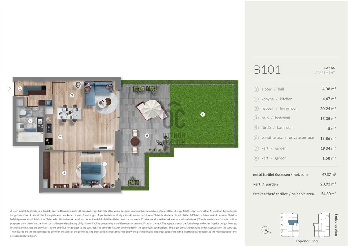 - Kilátás:Kertre néző