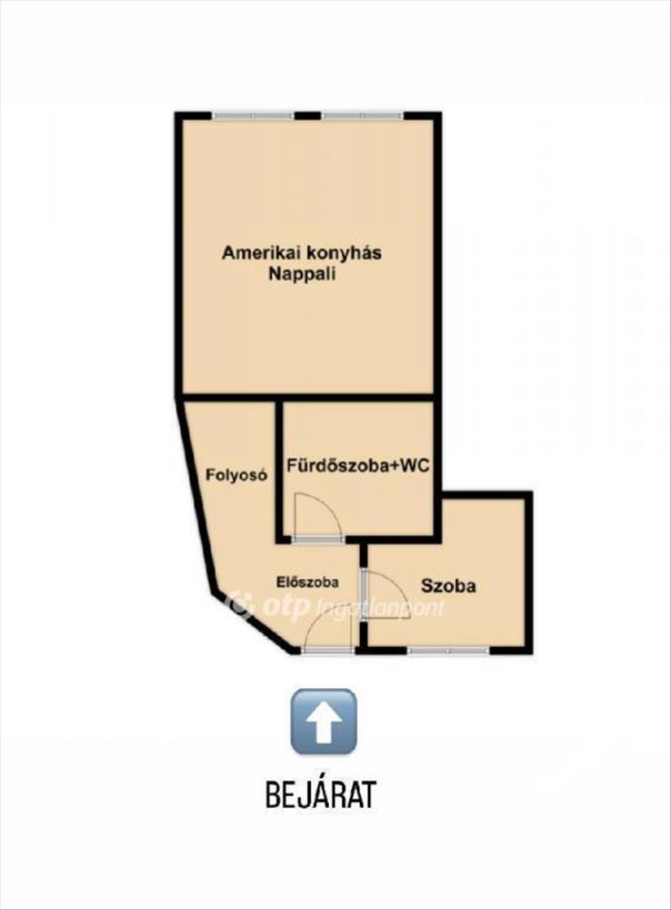 - Elrendezés: amerikai konyhás nappali étkezősarokkal + külön nyíló hálószoba