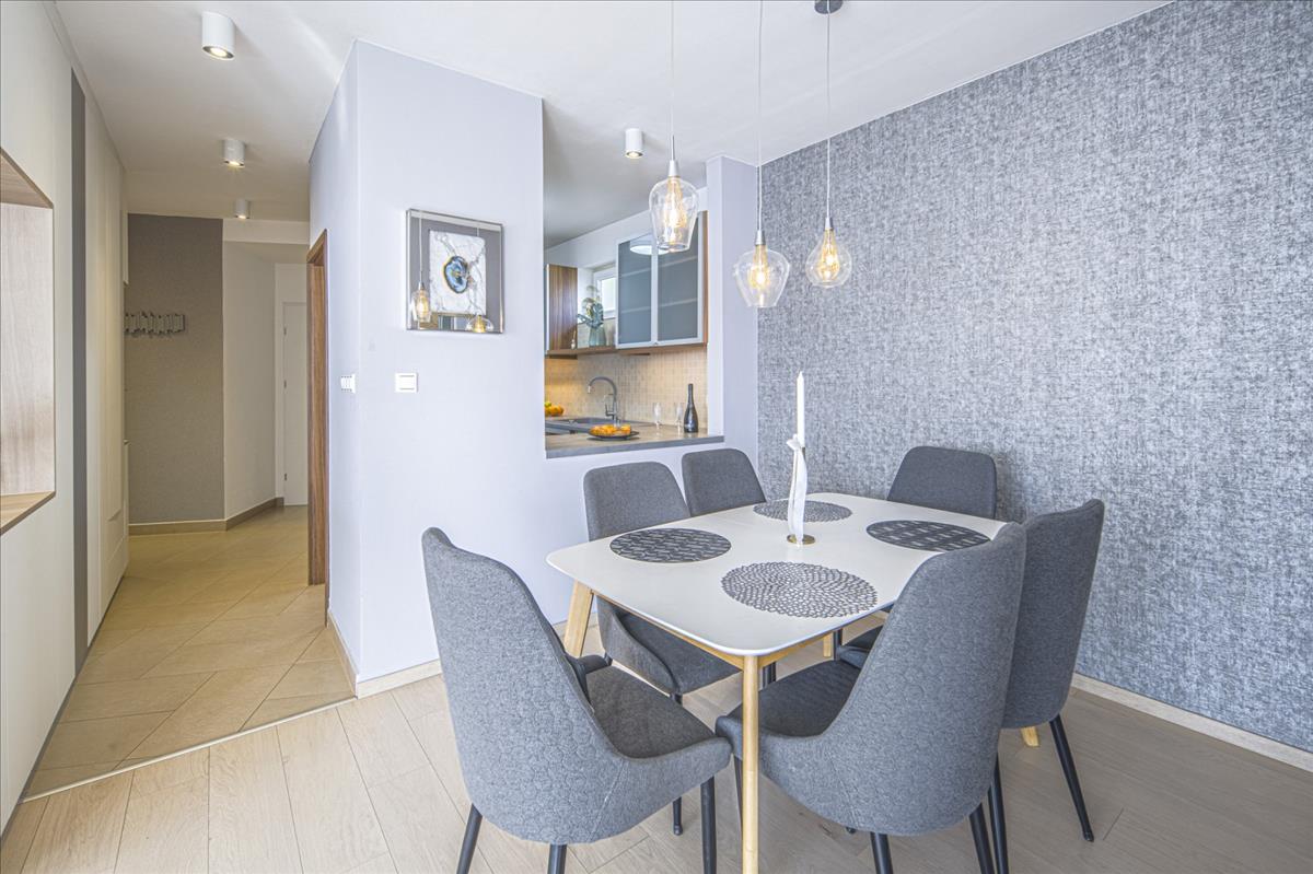 Klíma, elektromos redőny, riasztó, beépített konyha és teljes bútorzat jellemzi, ezen akár azonnal költözhető, 2005-ben épült, új építésű, lifttel, mélygarázzsal rendelkező társasházban található prestige ingatlant.