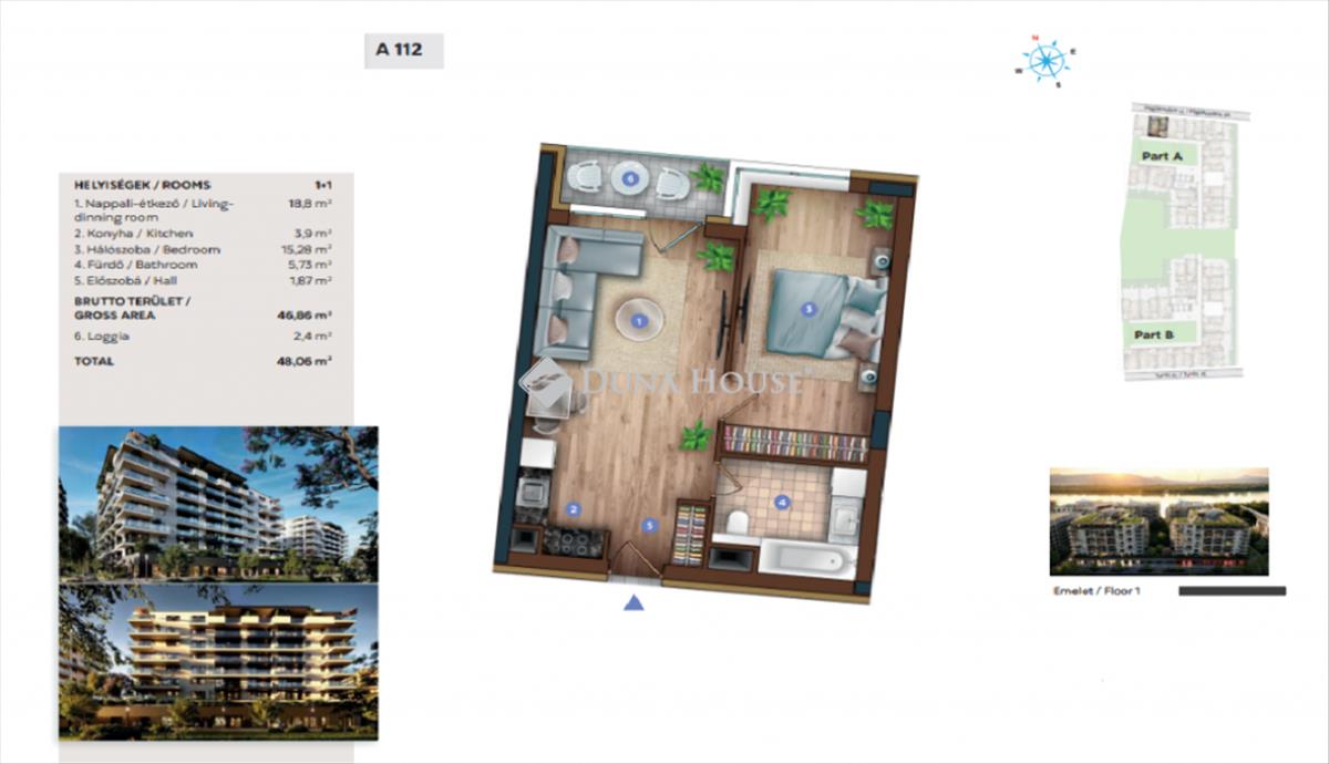 Az ingatlan Budapest XIII. kerületének egyik legkedveltebb részén, a Marina Part közelében helyezkedik el, ahol a vízpart közelsége, a zöld környezet és a kiépült városi infrastruktúra különleges életminőséget biztosít.