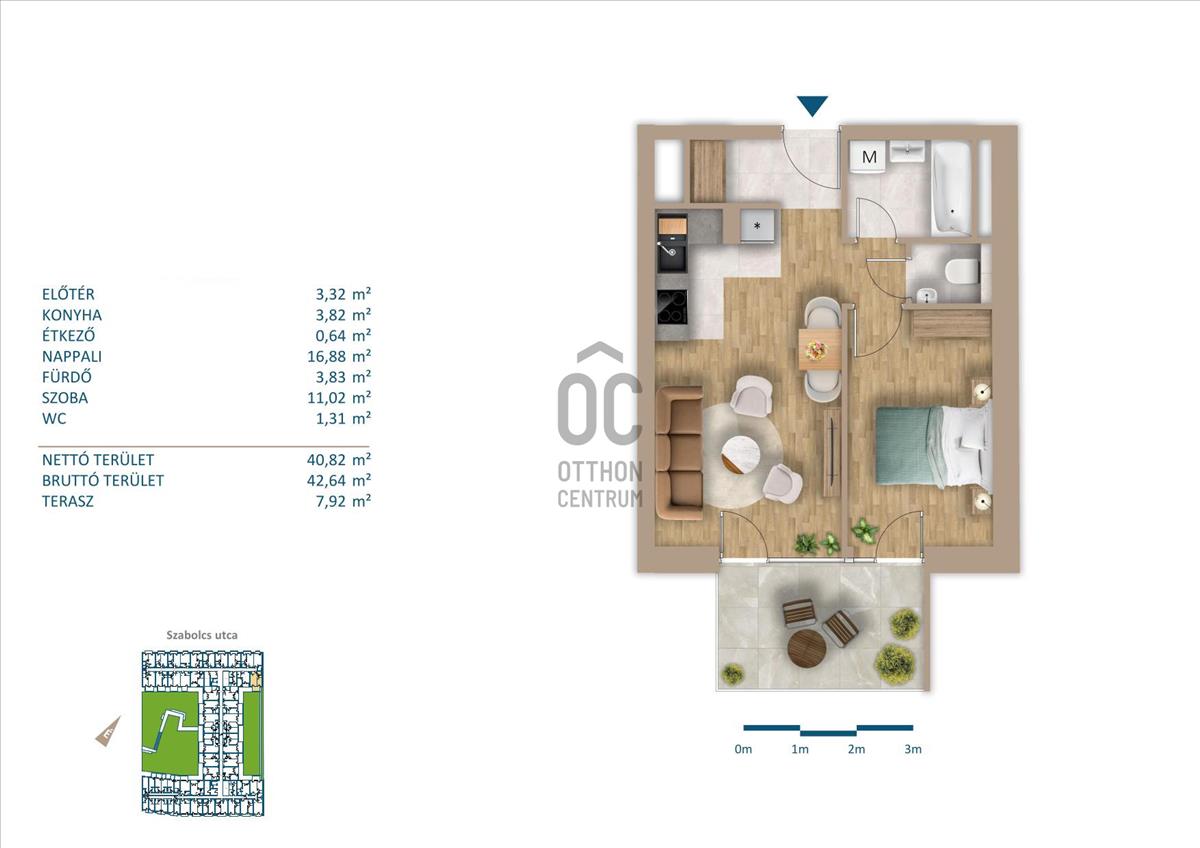 A 41 m² nettó alapterületű, 2. emeleti lakás egyik legnagyobb értéke a belső udvarra néző, 8 m²-es hatalmas erkély, amely valódi nyugalmat és zöld környezetet biztosít a belváros pezsgése mellett.