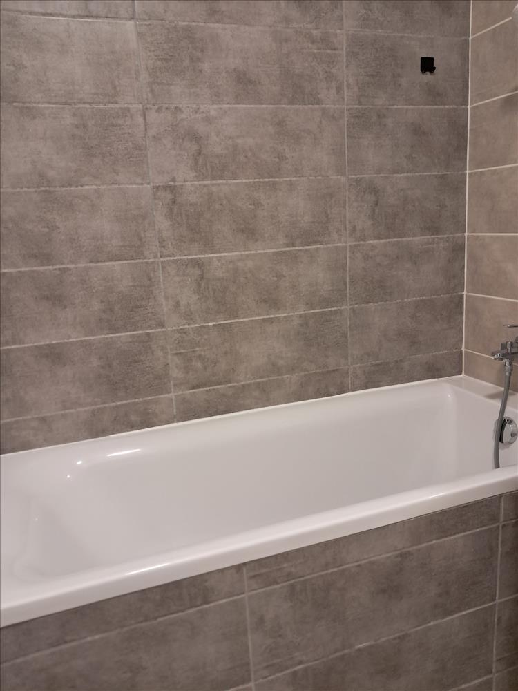 A konyhabútor egyedi tervezés és kivitelezés, természetesen gépesítéssel együtt a vételár része, úgyis mint a fürdőben elhelyezett mosó- szárító gép is.