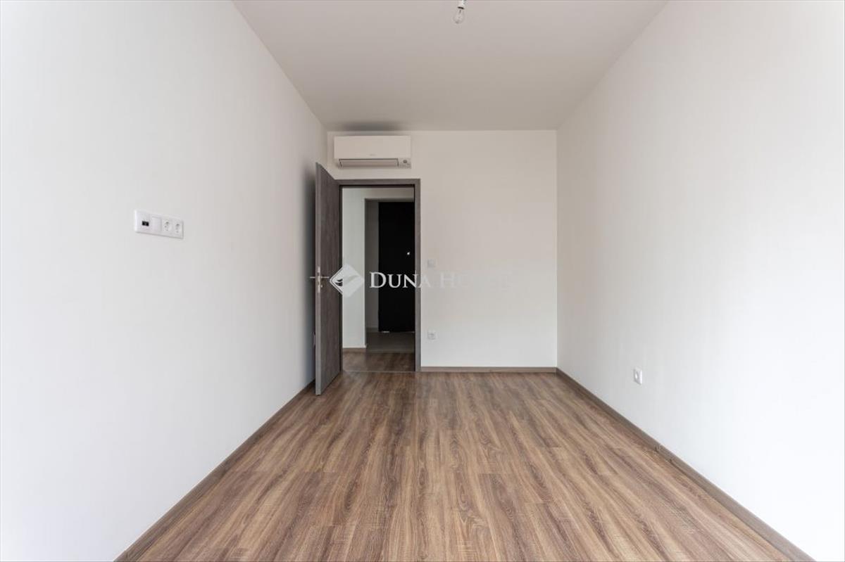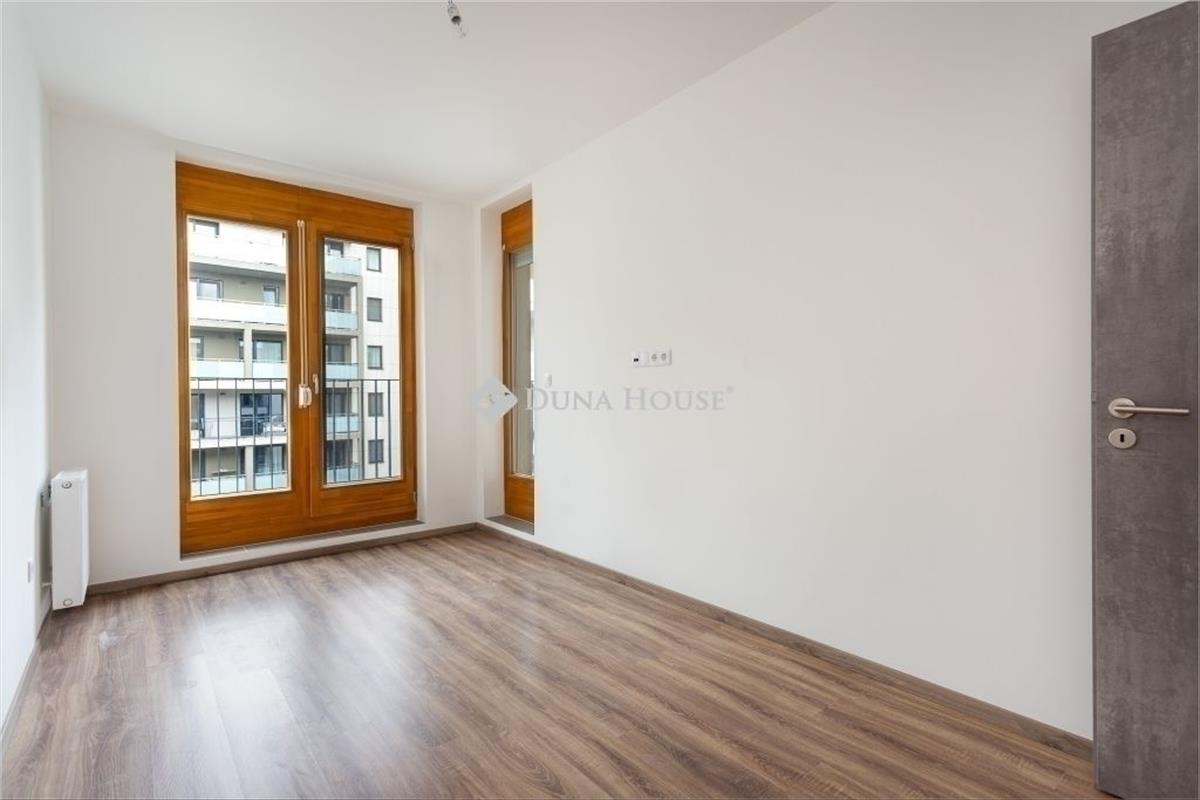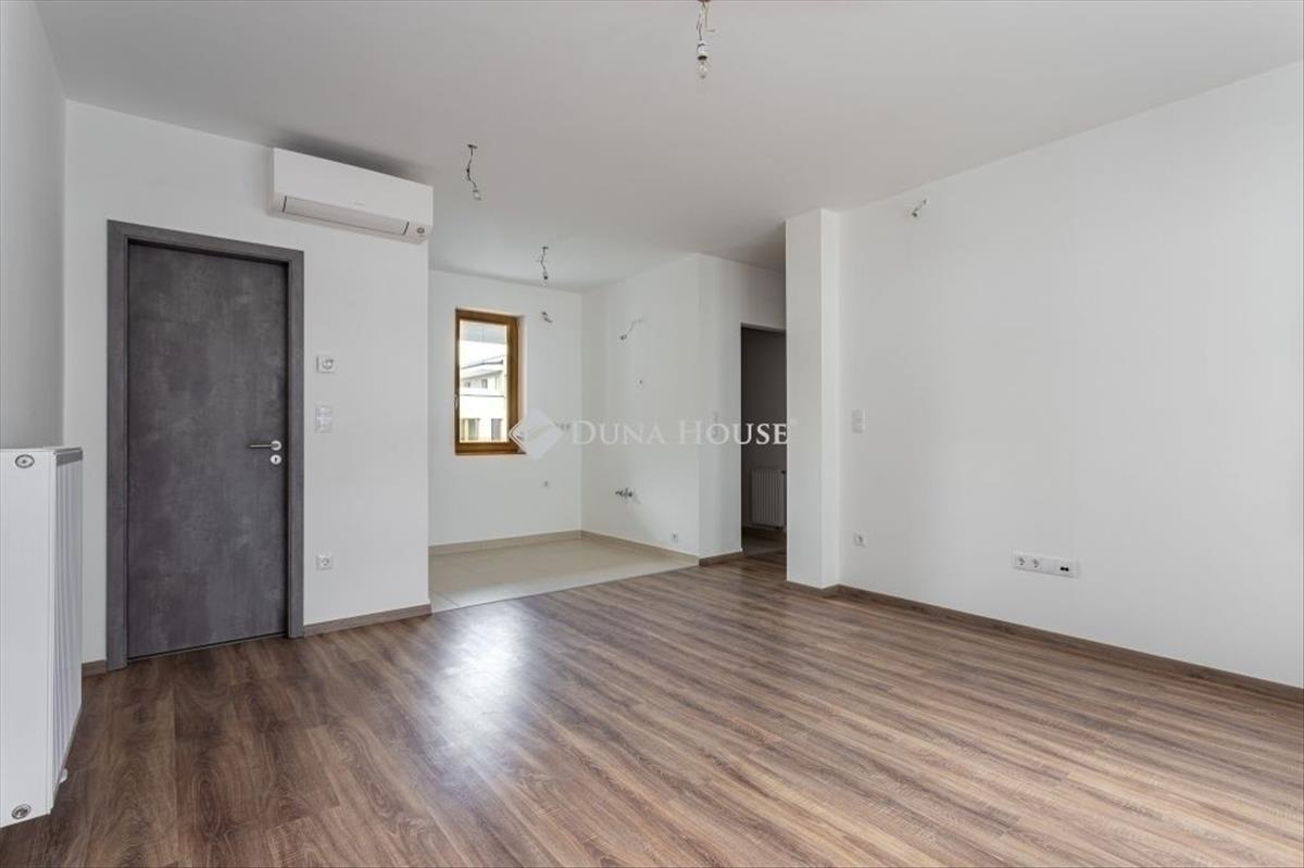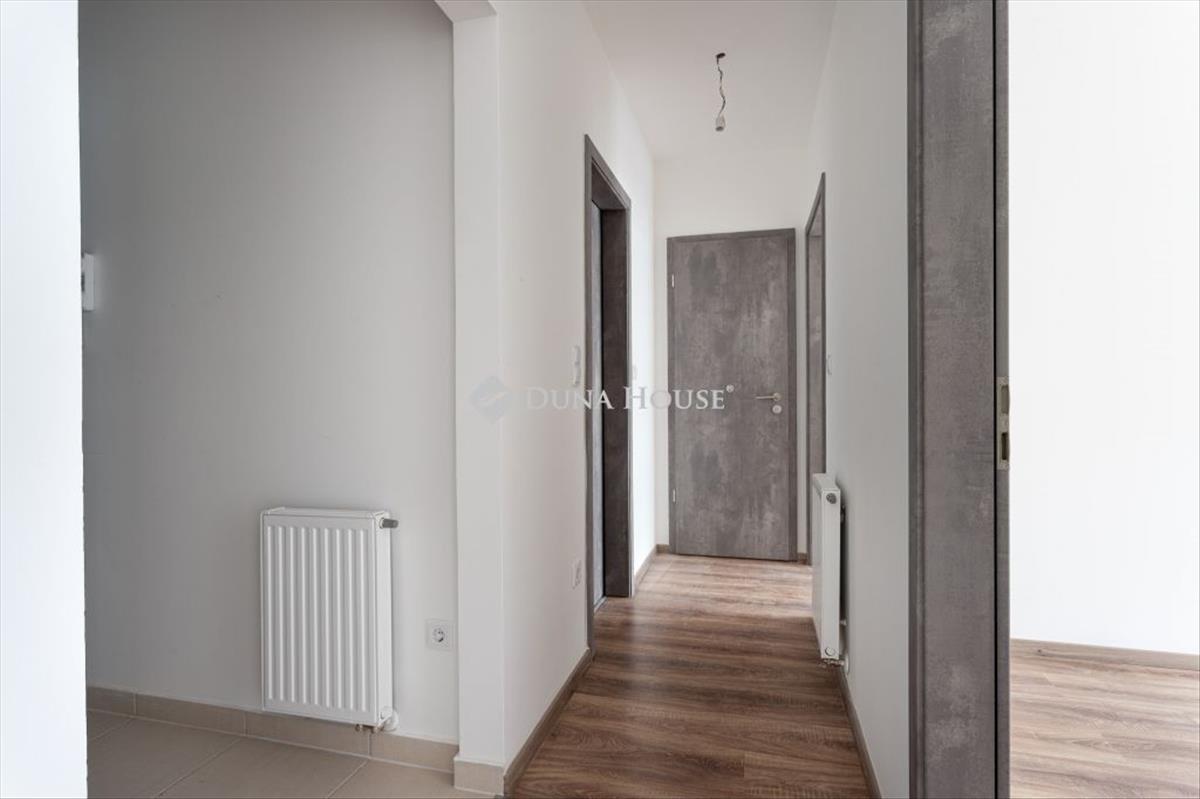 Emeletén található, déli tájolással, nappali + két hálós elosztással. a bejáratnál biztonsági ajtón lépsz be egy tágas előszobába, ahol kényelmesen elférnek az előszobabútorok, cipők, kabátok. Innen egy közlekedőn át jutsz a nappaliba, illetve a hálószobákhoz. a nappali nagy üvegfelülettel nyílik a terasz felé, fa nyílászárókkal, amelyek jól illenek a szürkés fa mintázatú laminált padlóhoz és a modern, sötétebb beltéri ajtókhoz. a nappalihoz ablakos amerikai konyha tartozik, így a konyha is kap természetes fényt. a konyha mellett külön háztartási helyiség/tároló kapott helyet, ahol a háztartási eszközök kulturáltan elpakolhatók. a nappaliból egy kb. 16 M²-es, részben fedett teraszra lépsz ki, amely a lakópark belső udvarára néz. a mérete alkalmas arra, hogy kinti étkezőasztalt, ülőgarnitúrát és növényeket is elhelyezz, így ténylegesen használható kültéri élettér. a hatodik emeleti magasság és az elhelyezkedés miatt a terasz intim, nincs közvetlen belátás a szomszédos lakásokból. a két hálószoba külön nyílik a közlekedőről, mindkettőben fa keretes ablakok vannak a terasz irányába, egységes, semleges padlóburkolattal. Jó arányú, jól bútorozható szobák, hálóként, gyerekszobaként vagy dolgozóként is jól használhatók. a lakás egyik erőssége a két, külön kialakított fürdőszoba, mindkettőben WC-vel. Az egyikben kád található, a másikban üvegfallal határolt zuhanykabin. a falakon modern, fehér, részben textúrált csempék vannak, nagyobb formátumú, semleges padlólapokkal. Mindkét fürdőszoba ablakos, természetes fénnyel és szellőzéssel, törölközőszárítós radiátorral. Az egész lakás színvilága visszafogott és egységes: fehér falak, fa hatású padló, szürke ajtók, fehér kerámia és króm szerelvények. Ez megkönnyíti a berendezést, szinte bármilyen stílus jól illeszthető hozzá. a lakás új állapotú, üres, azonnal költözhető. Épület és környezetA lakás modern, liftes, újépítésű lakóparkban található, szellős beépítéssel és nagy, gondozott belső kerttel. a lakóépületek a zöld udvar köré szerveződnek, a lakás ablakai és a terasz is erre a belső kertre néznek, így a mindennapi látvány inkább zöldfelület, mint forgalmas utca. a belső udvar rendezett, kialakított növényzettel, gyepfelületekkel, a ház egésze rendezett, egységes, mai megjelenésű. a lépcsőházak és közös terek tiszták, átgondoltan szervezettek, a lift a garázsszinttől a felső szintekig közlekedik. a környék városi életmódra alkalmas: bevásárlás, szolgáltatások, éttermek, a belváros és a nagyobb közlekedési csomópontok rövid sétával vagy néhány megállóval elérhetők. Aki nem akar minden nap autóba ülni, annak ez jól tervezhető lokáció. Kinek ajánlott és miért érdemes megnézniAz elrendezés, a két fürdőszoba és a nagy terasz miatt a lakás jó választás lehet fiatal párnak, akik külön hálót, nappalit és egy plusz szobát keresnek dolgozónak vagy gyerekszobának, illetve kisgyermekes családnak, akiknek fontos a zárt, zöld belső udvar és a praktikus, jól pakolható terek. Azoknak is jó megoldás, akik részben vagy teljesen otthonról dolgoznak, és szükségük van egy csendes, elkülöníthető szobára. Ha olyan új építésű, háromszobás lakást keresel, amelyben nagy terasz, két ablakos fürdőszoba, rendezett belső kertre néző kilátás és semleges, könnyen berendezhető belső terek vannak, ezt az otthont érdemes személyesen is megnézni. Időpontegyeztetésért keress bizalommal.
