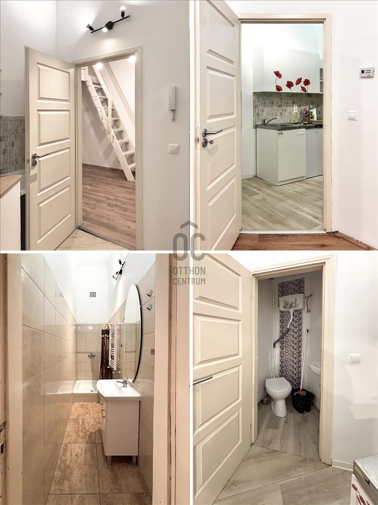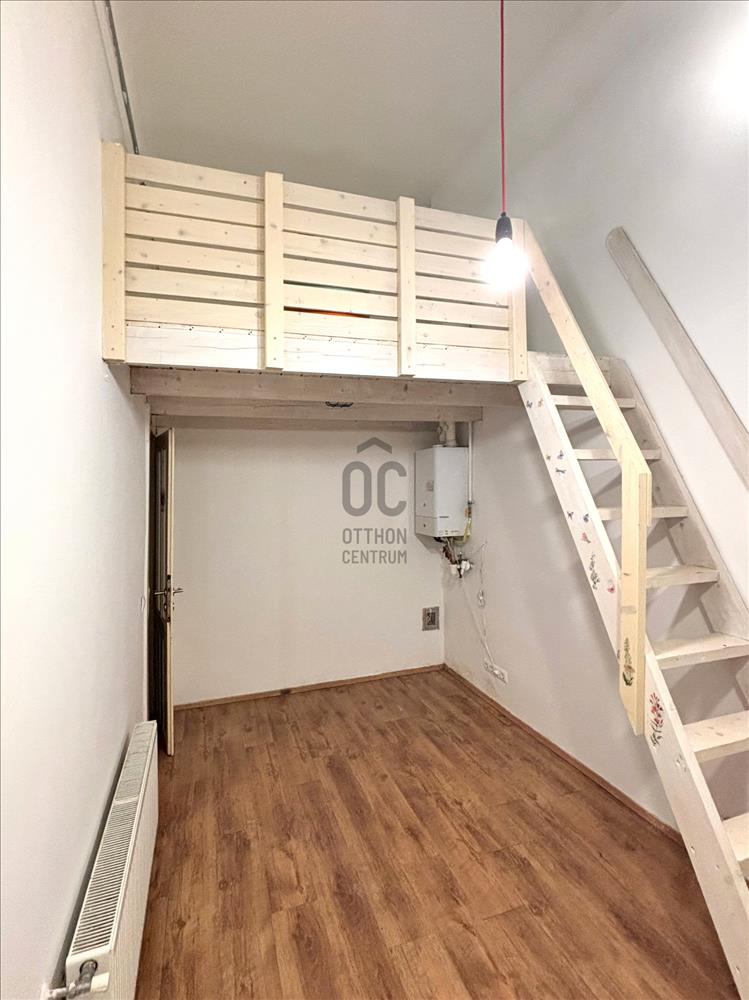 Praktikus elrendezés: Jelenleg 2 külön nyíló szoba, 5 m²-es állógaléria, minikonyha és külön fürdő/WC található benne.