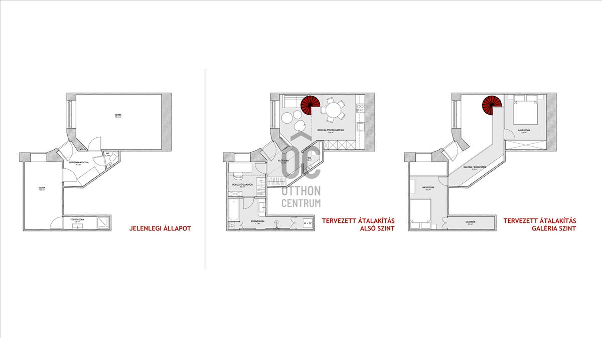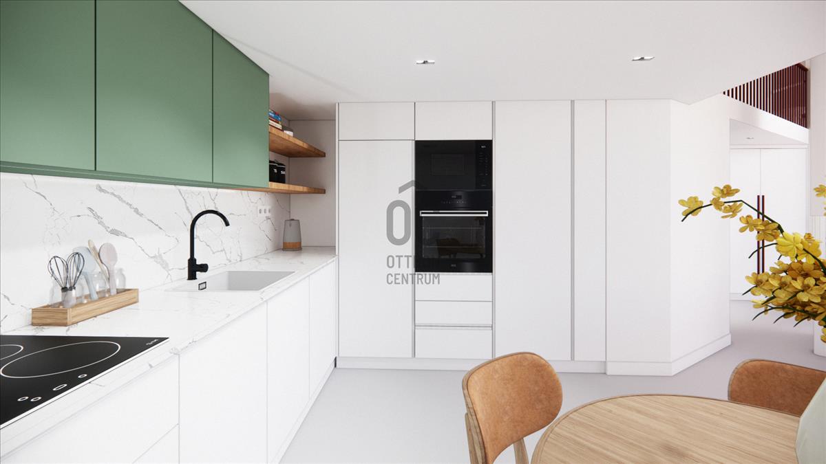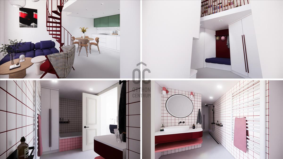 Bővíthető tér: Belsőépítész által tervezett látványtervek alapján a hatalmas belmagasság kihasználásával belső duplexszé alakítható. Ezzel az alapterület majdnem megduplázható, így akár 4 fő számára is kényelmes otthon válhat belőle.