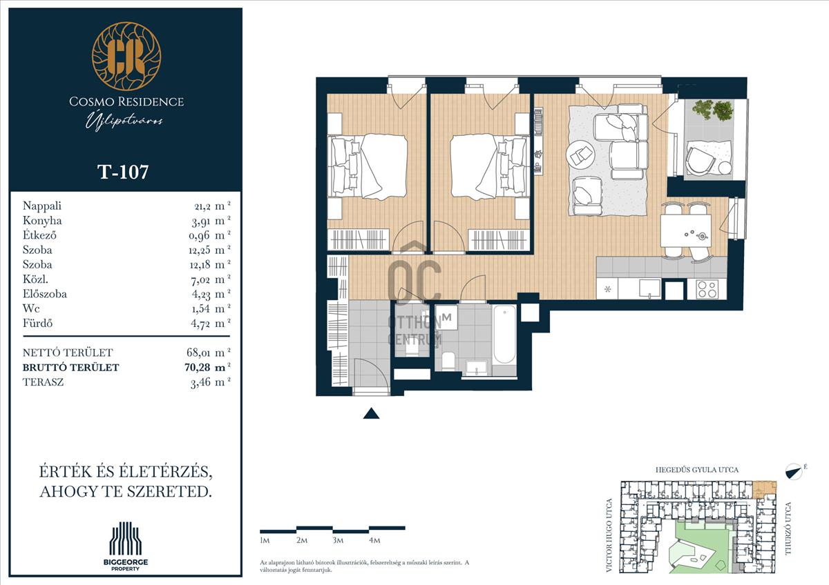 Budapest egyik legvonzóbb és legkeresettebb városrészében, Újlipótváros szívében egy új, exkluzív lakópark épül: az Cosmo Residence. a Hegedűs Gyula, Visegrádi, Victor Hugo és Thurzó utcák által körülhatárolt területen elhelyezkedő ingatlanfejlesztés a városrész ikonikus, nagypolgári hangulatát ötvözi, modern életstílussal, magas színvonalú építészeti megoldásokkal és első osztályú kényelemmel.