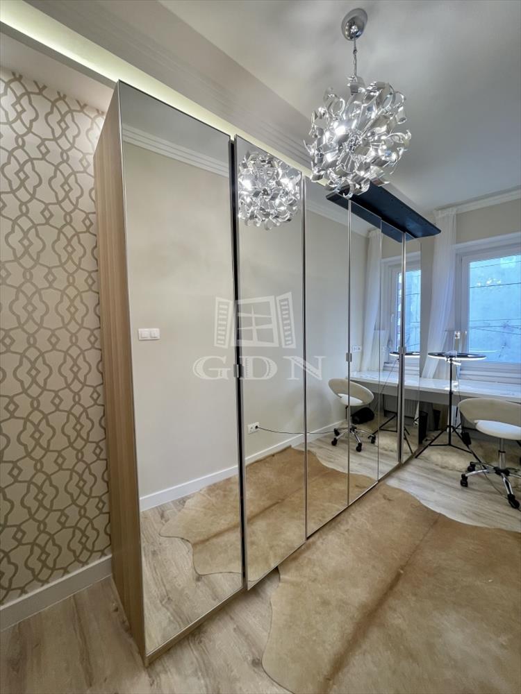 Ahogy belépünk az ajtón egy egyedi designnal és letisztult színvilággal rendelkező előszoba tárul elénk, amelyből szembe nyílik egy dolgozó szoba és bal kéz felől egy gardrób szoba, földtől plafonig érő egyedi gardrób szekrénysorral ami minden nő álma, ebben biztos vagyok. a bejárati ajtó jobb belső oldalán pedig, egy stílusosan berendezett amerikai konyhás nappali kapott helyet, természetesen hozzá passzoló luxus bútorokkal.