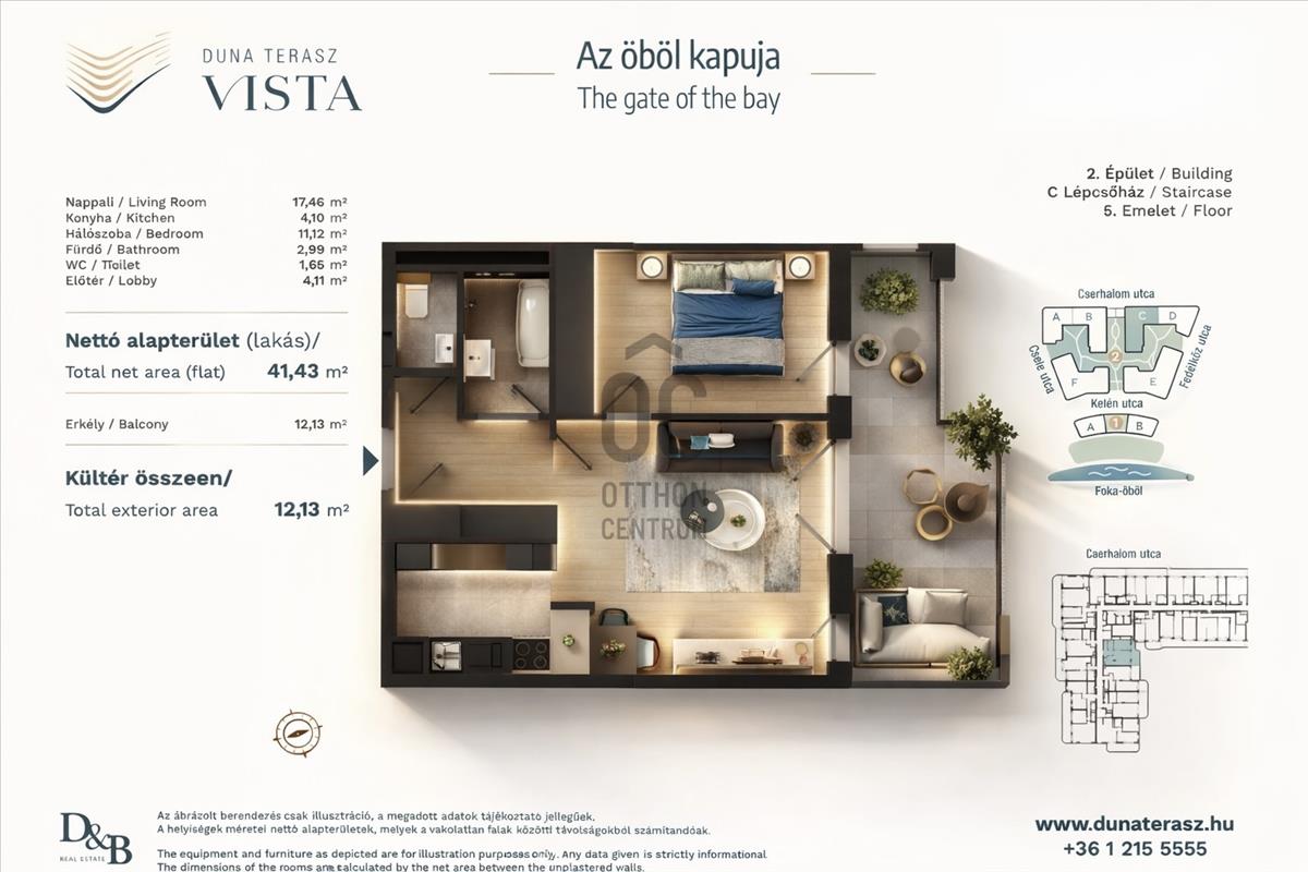 A XIII. kerület ikonikus vízparti negyedében, a Duna Terasz Vista projektben eladó egy 5. emeleti, déli tájolású, kétszobás új építésű lakást, amely a modern építészet és a Duna-parti életérzés kifinomult találkozása. Ez az ingatlan nem csupán egy lakás, hanem egy prémium életstílus része, Budapest egyik legdinamikusabban fejlődő vízparti övezetében, a Marina parton.