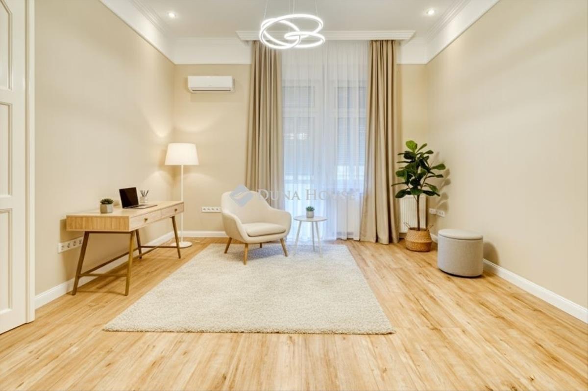 Teljes felújítás, azonnali használat – új gépesített konyha, beépített szekrények, elegáns világítás, függönyök
