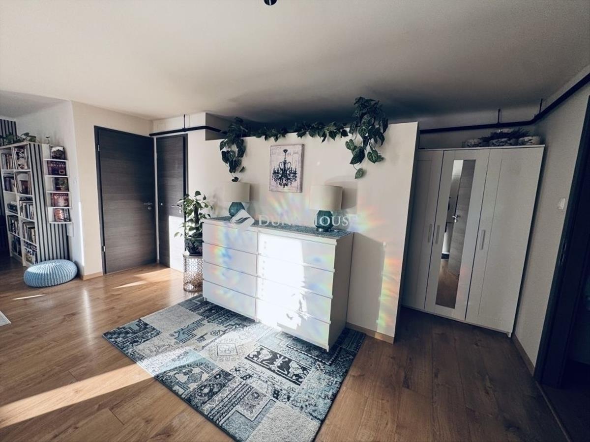 Privát szféra a városban! Hat emeletes ház legfelső szintjén egyedül tündököl ez a mini loft. a ház teljes tetőrendszere 2024-ben lett felújítva. Ez nem csak minden háznál fontos, de a tető alatt lakóknak elengedhetetlen! a lakásnak saját Wifi kapcsolatos, mozgásérzékelő lámpával, mikrofonnal és automata éjjellátó rendszerrel felszerelt kamerája van a bejárati ajtónál (+ rácsos ajtó). Azon felül a ház is kamerákkal rendelkezik a lakók biztonságát őrizve. Két szoba, két fürdőszoba + külön wc és gardróbszoba. Könnyen három szobássá alakítható. Hűtő-fűtő klíma, okosbojler, majdnem földig érő szúnyoghálós, redőnyös ablakok. Szembeszomszédok távcső távolságra vannak, így garantált a privát élet és egész évben a természetes napfény. a mini loft emeleten az egész felvezető lépcső, illetve a zárt közlekedő (télikert) a társasház szabályainak megfelelve alakítható. Jelen esetben (videón látható) elszabadult a varázspálca, de bármikor vissza lehet térni a letisztult állapotához. a lift az ötödik emeletig visz, utána saját lépcsőn egy emeletet kell menni. Az ingatlanba besétálva egy nagy loftszerű térben találja magát az ember, ami különleges egy 54nm -es lakásnál. Ez magában foglalja a konyhát, előszobát, gardróbszobát és nappalit. a térnek a nappali részéből (balra) nyílik az egyik fürdőszoba és a külön wc is. a konyha részéből (jobbra) nyílik a gardróbszoba és hálószoba külön fürdőszobával. a modern minimalista konyha letisztult megjelenése a fogantyú nélküli szekrények és beépített gépeknek köszönhető, úgy mint sütő, mosogatógép, hűtőszekrény, fagyasztó és szagelszívó. Újlipótváros magáért beszél. Aki itt keres az tudja. Nem kell messze menni! Már az utcában, illetve egy zebrán áthaladva található minden! Westend City Center, mozi, kávézó, étterem, biliárd, edzőterem, jégkorcsolyapálya, szabadulószobák, esti szórakozóhelyek, sportolásra számtalan lehetőség! Minden ami a szokásos felsorolás: ovi, suli, doki, patika, játszótér stb. a listán felül: Vígszínház, Margitsziget, Szent István park, Lehel téri piac, Budapest Jazz club, vr park, Flippermúzeum. a lokáció kitűnő, (M3-as) metró (Lehel tér és Nyugati pályaudvar), (4-6-os) villamos, (73-as), (76-os) troli, (15-ös) busz, (91, 191, 291) és számos éjszakai buszjárat karnyújtásnyira.