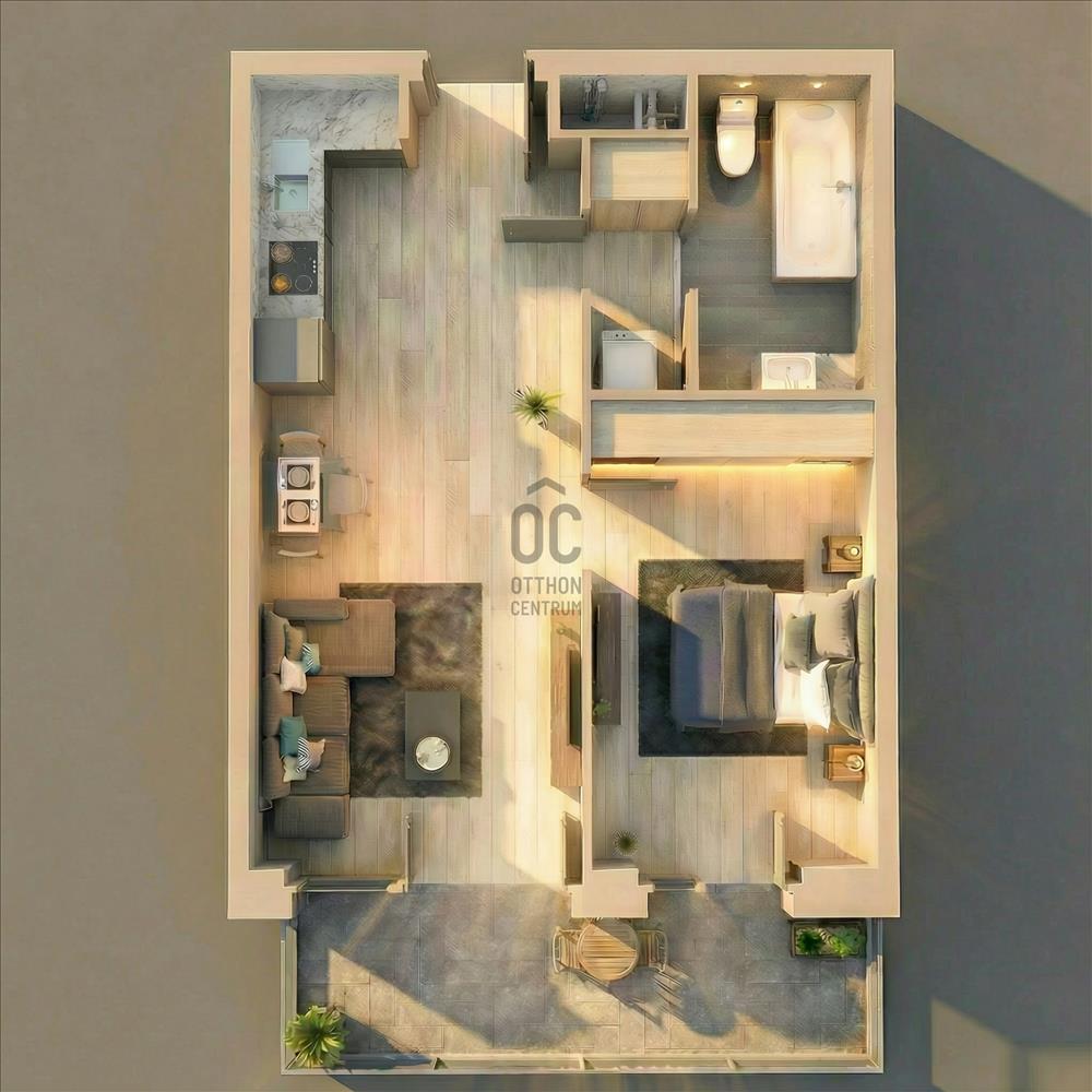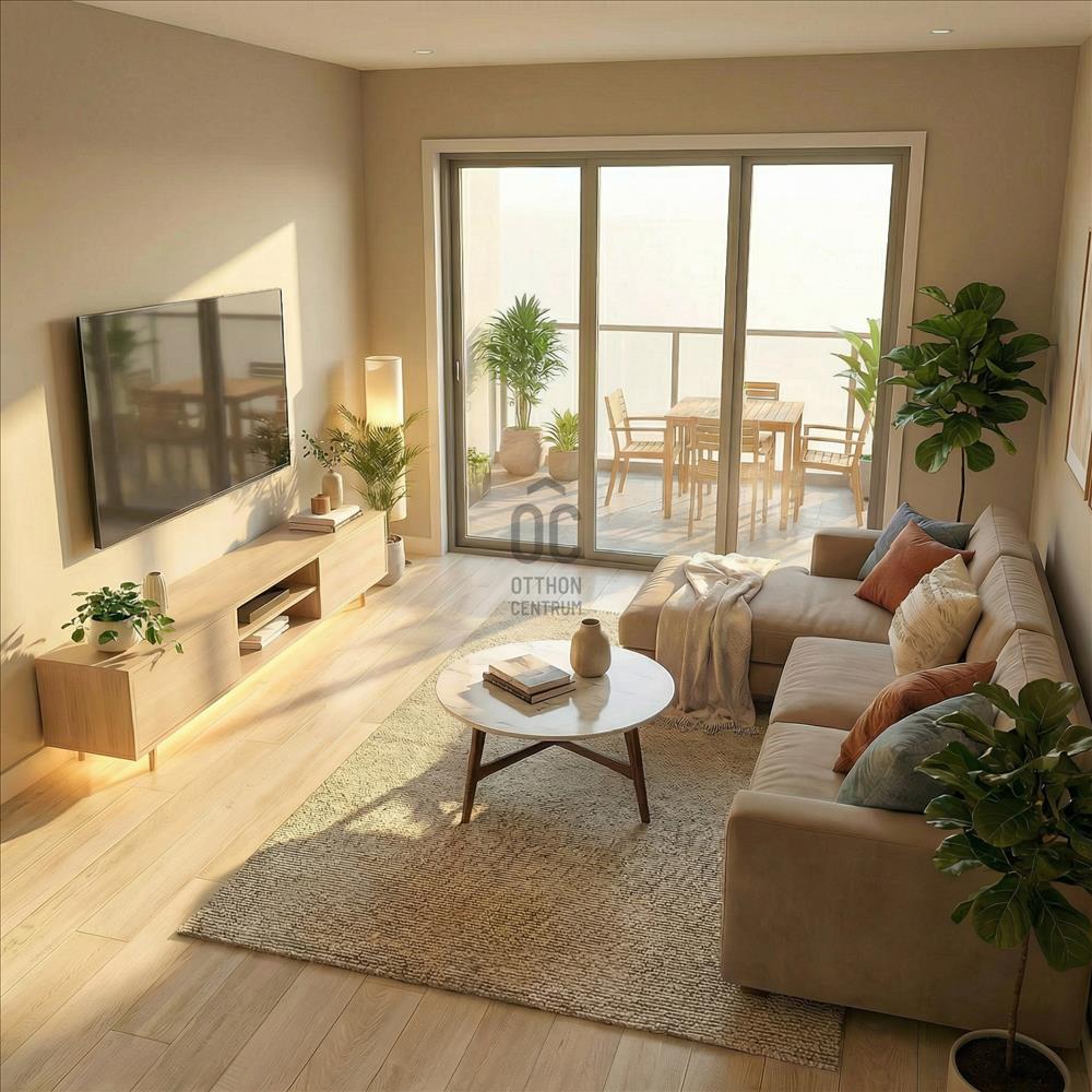 5% Rozsdaövezeti támogatás visszaigényelhető2026 novemberi műszaki átadású, nagyerkélyes, nyugati tájolású, csendes belső kertre néző, élhető elosztású, jól bútorozható, gardróbos kétszobás lakás.