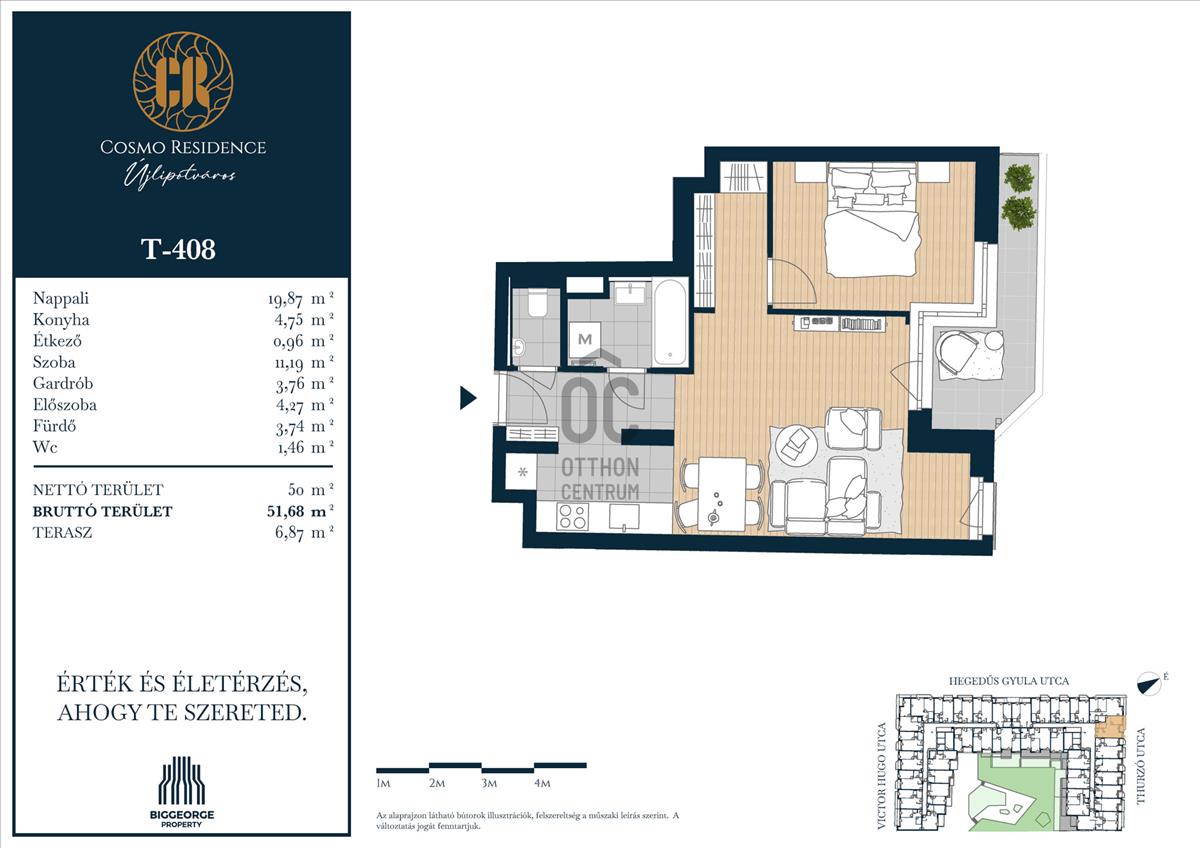 Projekt bemutatásaBudapest egyik legvonzóbb és legkeresettebb városrészében, Újlipótváros szívében egy új, exkluzív lakópark épül: az Cosmo Residence. a Hegedűs Gyula, Visegrádi, Victor Hugo és Thurzó utcák által körülhatárolt területen elhelyezkedő ingatlanfejlesztés a városrész ikonikus, nagypolgári hangulatát ötvözi, modern életstílussal, magas színvonalú építészeti megoldásokkal és első osztályú kényelemmel.