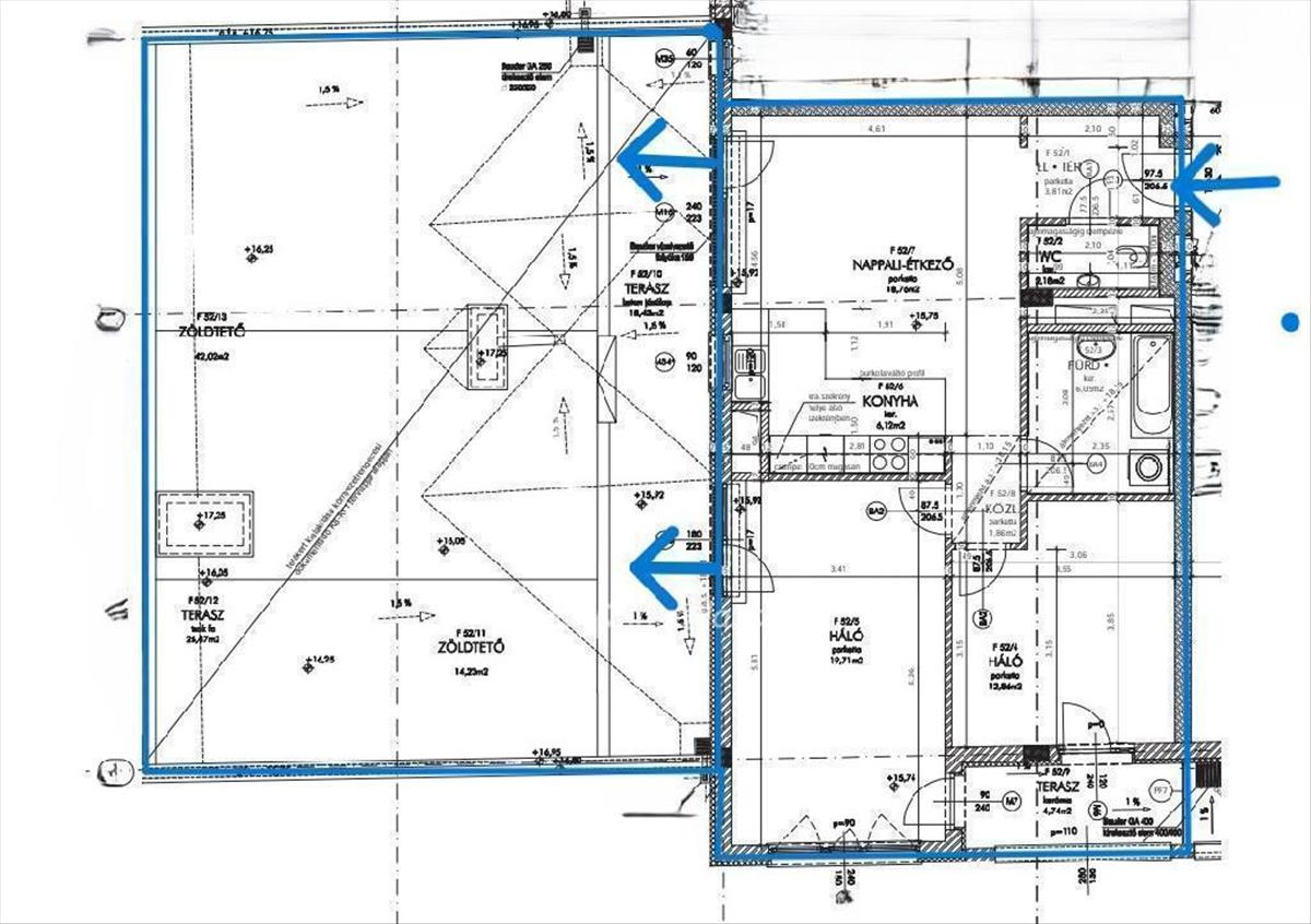Ez a 71 m2-es, 5. emeleti lakás nemcsak otthon, hanem életérzés is. a nappaliból és a nagyobbik hálószobából közvetlenül kiléphet a 104 nm -es zöld tetőkertbe, ahol bokrok, fű és virágok között élvezheti a nyugalmat, vagy egy baráti beszélgetést. Ez az intim, saját kis oázis teljesen egyedivé teszi az ingatlant, olyan élményt ad, amit a legtöbb városi lakás soha nem nyújthat.