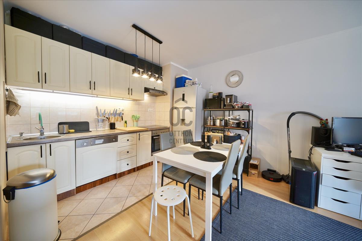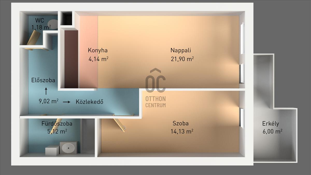 az amerikai konyhás nappali tágas közösségi teret ad, míg a külön nyíló hálószoba nyugodt, intim visszavonulást biztosít. a külön fürdő és wc a mindennapok kényelmét szolgálja.