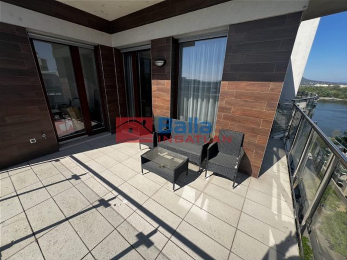 Eladó egy igazán különleges adottságú lakás, a Duna part közvetlen közelében, egy dupla teraszos, 3 + 1 fél szobás, Foka Öbölre és a Dunára is valamint a város irányába Panorámás, gépesített konyhás, azonnal birtokba vehető, tehermentes lakás! Liftes, portaszolgálatos házban! Belmagasság 300cm.