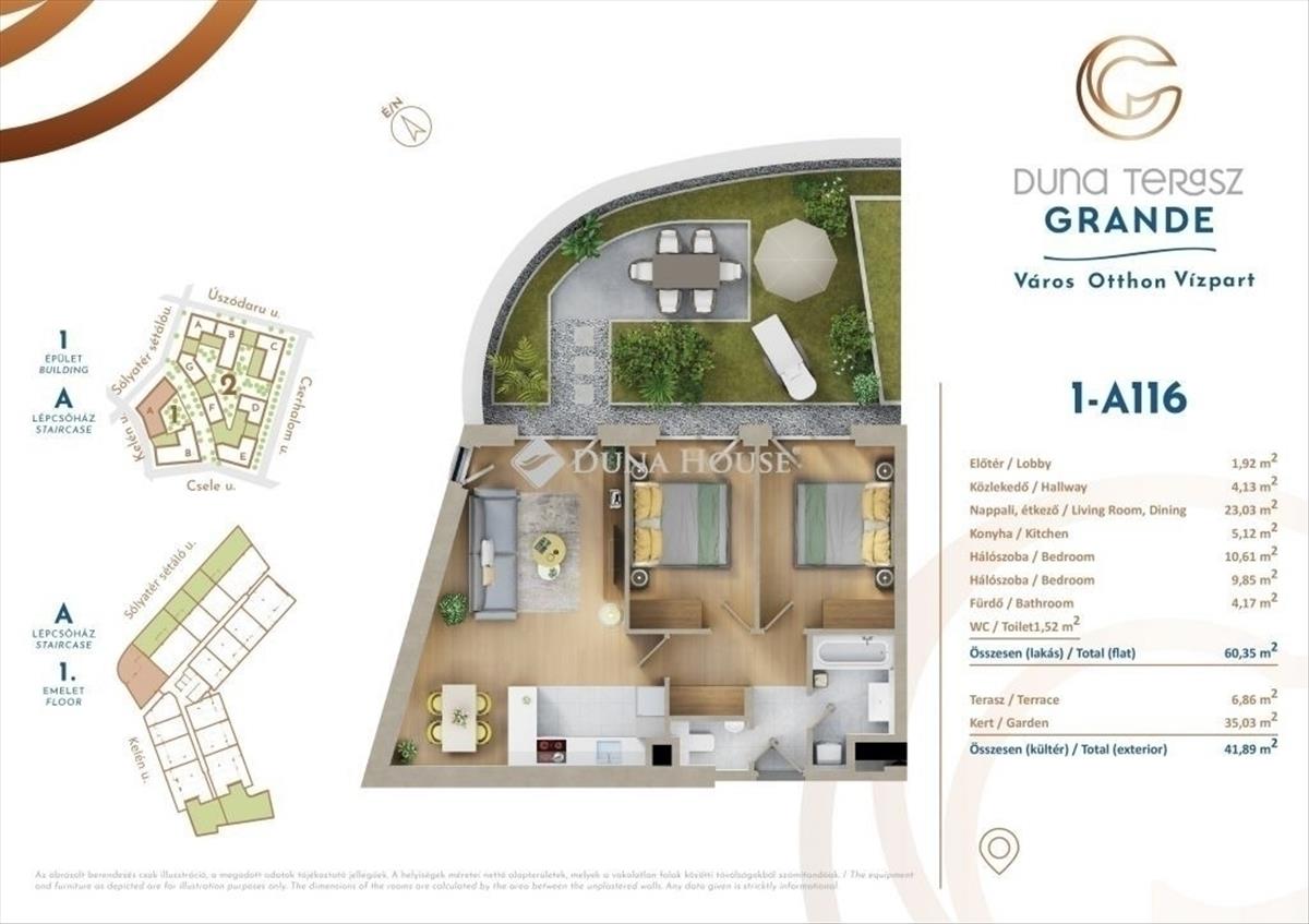 Lakás alapterület: 60 m²Terasz + kert: 41 m²