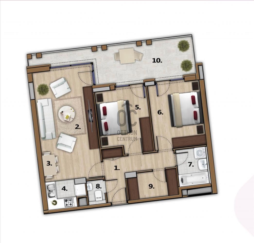 - 65 m² lakótér + 12 m² terasz