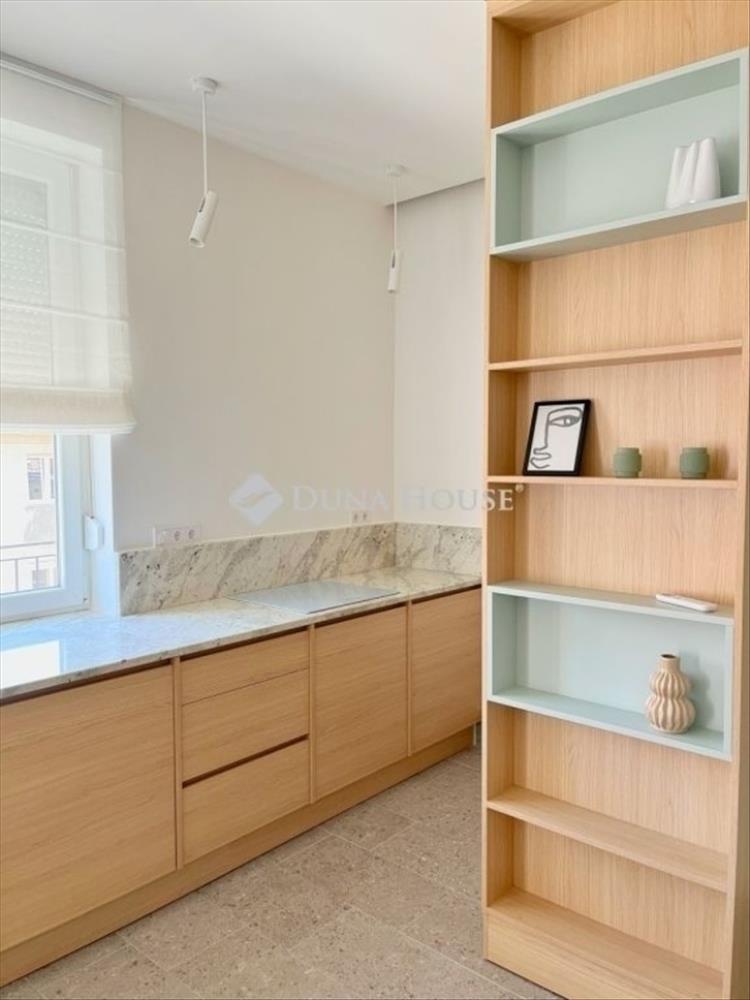 A lakás belsőépítész tervei alapján került felújításra és átalakításra. a nappali és a konyha-étkező egy tágas légtérben található, dupla erkélyajtóval a teraszra. a hálószobából szintén van kijárat a teraszra. Külön vendég wc helyiség került kialakításra.